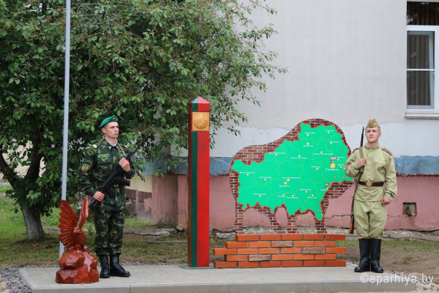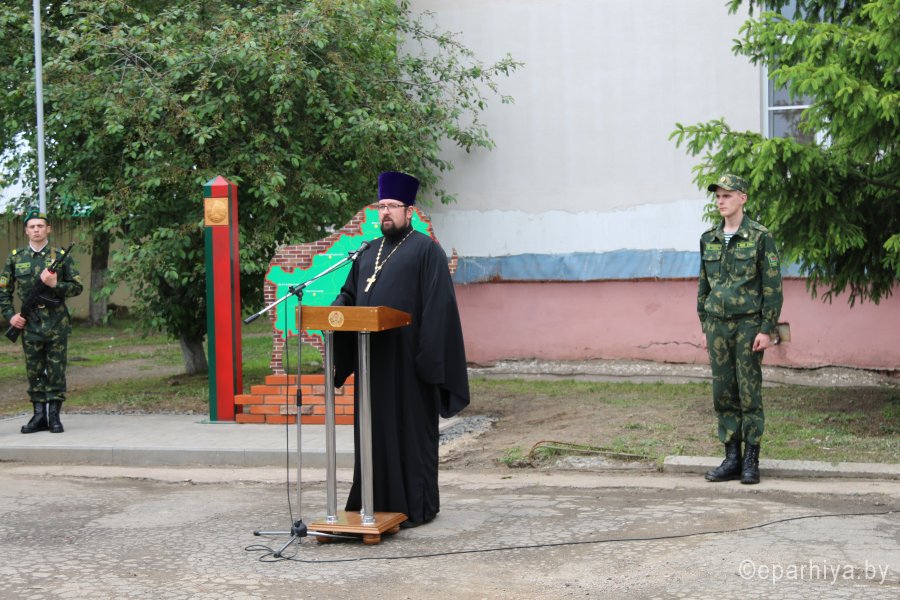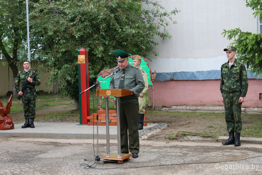 26 мая 2017г., на территории войсковой части 1242 Гомельской пограничной группы, состоялось торжественное открытие ритуальной площадки. В мероприятии приняли участие председатель отдела по взаимодействию Гомельской епархии с Вооруженными Силами и правоохранительным и органами протоиерей Игорь Ольшанов, руководители общественных объединений Гомельской области и г. Гомеля, ветераны Органов пограничной службы Республики Беларусь. Почетное право открытия ритуальной площадки было предоставлено командирам войсковой части 1242 полковнику Чернелю И.С., полковнику Морозу И.В., полковнику Кузьменко А.В. «В ритуальную площадку заложены символ мужества, отваги, несгибаемой стойкости и бесстрашия пограничников – кирпичи Брестской крепости, обагренные кровью тех, кто, проявив невиданную стойкость, волю и мужество, встал на пути фашизма.» - Кузьменко А.В Со словами поздравления от ветеранов выступил председатель областной организации Белорусского союза ветеранов органов пограничной службы полковник запаса Сливка В.А. Благословил добрые начинания пограничников протоиерей Игорь Ольшанов, а также пожелал всем, чтобы «наши границы оставались границами мира и добрососедства, чтобы никто не посмел усомниться в их нерушимости и неприкосновенности». |