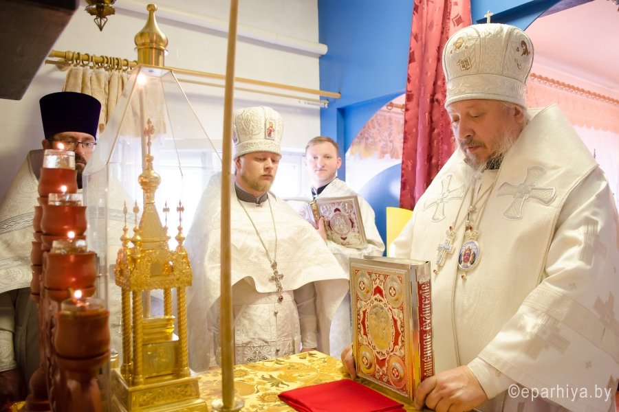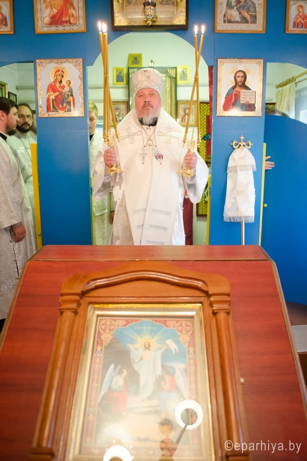 28 мая 2017г., в Неделю 7-ю по Пасхе, святых отцев I Вселенского Собора, Преосвященный Стефан совершил Божественную литургию в храме сщмч. Алексия Лельчицкого в г. Гомеле. Преосвященному сослужили: секретарь Гомельской епархии протоиерей Георгий Алампиев и духовенство епархии. По окончании богослужения Владыка поздравил причастников с принятием Святых Христовых Таин и обратился к молящимся со словами Архипастырского назидания. |