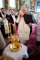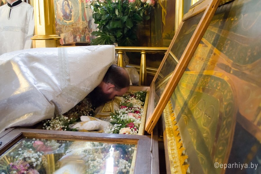 В предверии великого дня 180-летия со Дня рождения и 100-летия со Дня преставления молитвенника земли гомельской св. прав. Иоанна Кормянского в агрогородок Корма, даже накануне торжества стекается все больше и больше паломников. Каждый верующий, в эти дни, считает своим прямым долгом прикоснуться и попросить благословения у батюшки Иоанна. Именно поэтому 30 мая 2017г., в канун дня памяти св. прав. Иоанна Кормянского, на всенощном бдении, возглавляемом Преосвященным Иоанном епископом Золотоношским, было огромное количество верующих. Преосвященному сослужили: Благочинные округов Гомельской Епархии и духовенство храма. По окончании богослужения Владыка поздравил всех с наступающим праздником и обратился со словами Архипастырского назидания. |