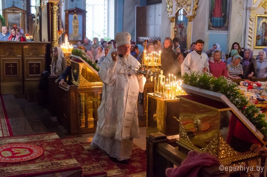 2 июня 2017г., в канун дня поминовения усопших (Троицкой родительской субботы), Преосвященейший Стефан возглавил вечернее богослужение и совершил Парастас (заупокойную утреню) в Свято-Петро-Павловском кафедральном соборе г.Гомеля. По окончании богослужения Владыка обратился к духовенству и прихожанам собора со словами Архипастырского назидания. Парастас или Великая панихида – заупокойная Всенощная – последование великой панихиды по всем усопшим православным христианам, совершаемое на Всенощном бдении родительских суббот (служится вечером в пятницу). |