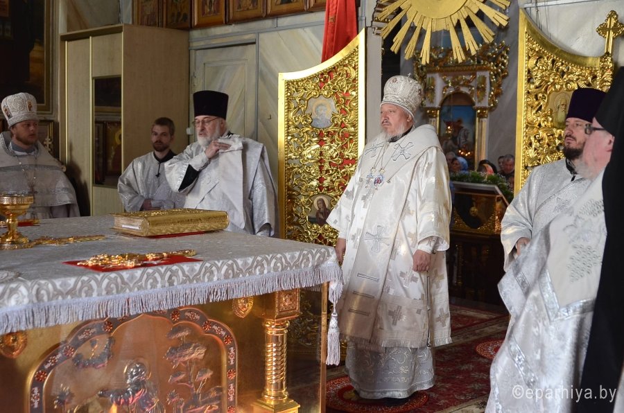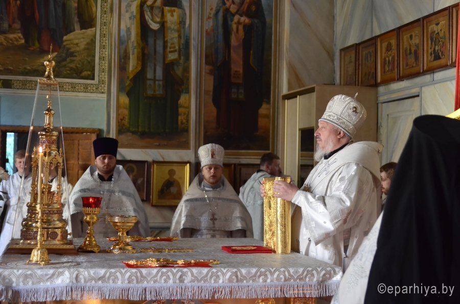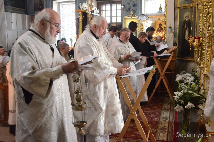 3 июня 2017г., в Троицкую родительскую субботу, Преосвященный Стефан совершил Божественную литургию в Свято-Петро-Павловском кафедральном соборе г. Гомеля. Преосвященному сослужили: секретарь Гомельской епархии протоиерей Георгий Алампиев и духовенство собора. По окончании богослужения Владыка совершил Великую панихиду, поздравил причастников с принятием Святых Христовых Таин и обратился со словами Архипастырского назидания. После этого секретарь Гомельской епархии протоиерей Георгий Алампиев от лица духовенства Гомельской епархии поздравил Преосвященного Стефана с Днем 30-летия иерейской хиротонии и преподнес в дар святую просфору. |