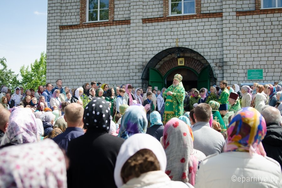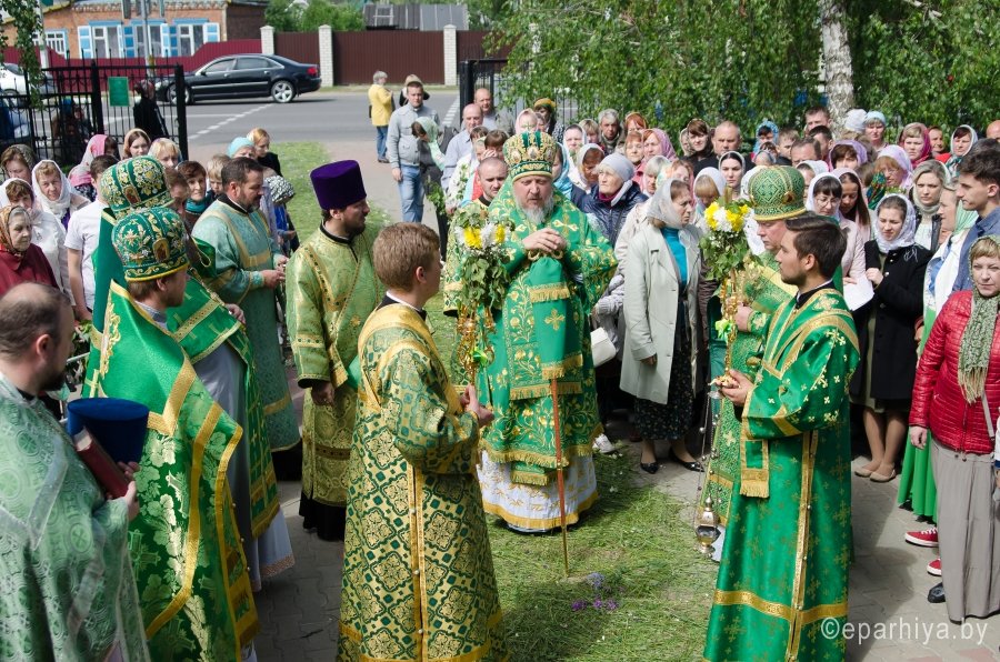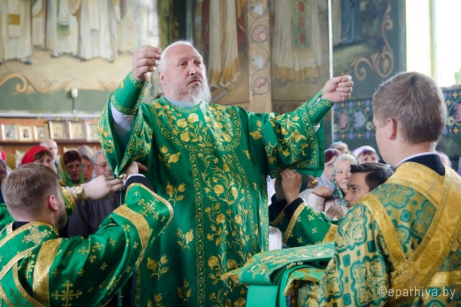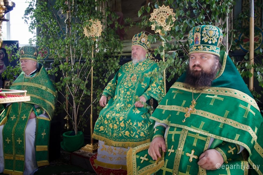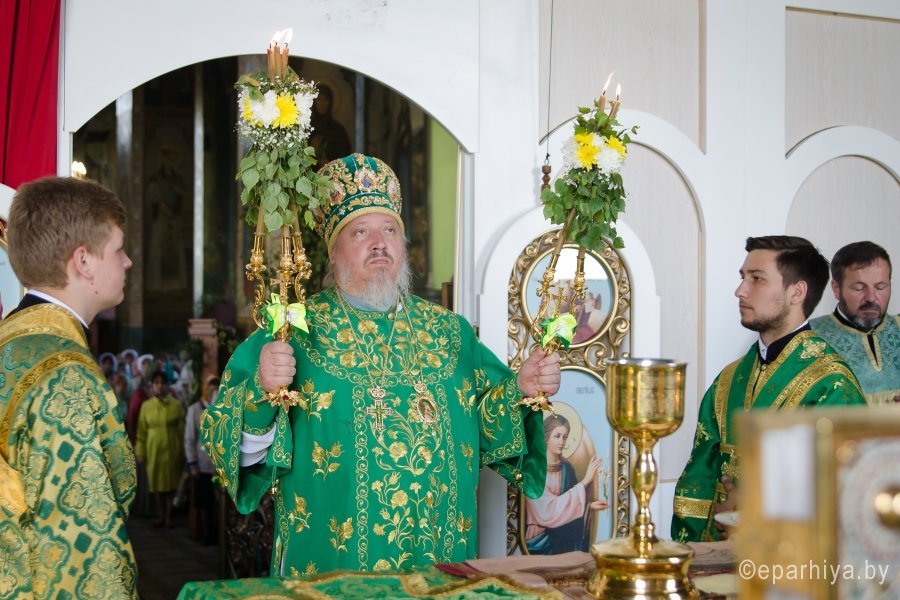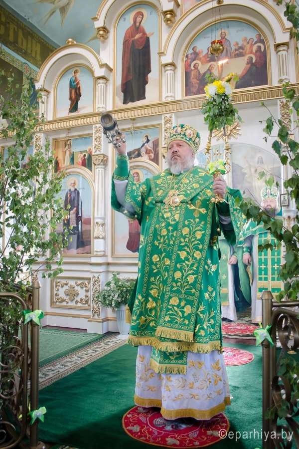 4 июня 2017г., в День Святой Живоначальной Троицы, Преосвященнейший Стефан возглавил Божественную литургию в Свято-Троицком кафедральном соборе г.Жлобина. Преосвященному сослужили: секретарь Гомельской епархии протоиерей Георгий Алампиев, благочинный монастырей Гомельской епархии архимандрит Амвросий (Шевцов), благочинный церквей Жлобинского благочинного округа протоиерей Василий Пилипенко и духовенство собора. По окончании Литургии Владыка совершил великую вечерню праздника Пятидесятницы с чтением коленопреклонных молитв, поздравил причастников с принятием Святых Христовых Таин, возглавил Крестный ход, окропил молящихся святой водой и обратился к молящимся со словами Архипастырского назидания. |