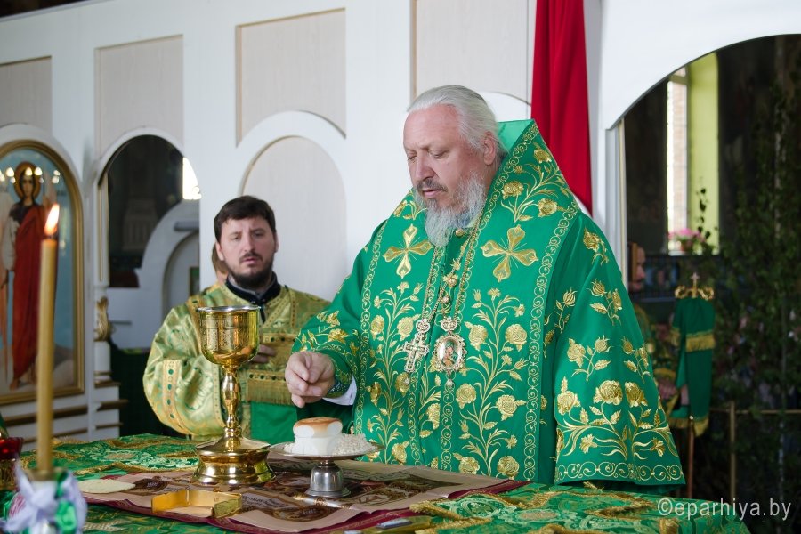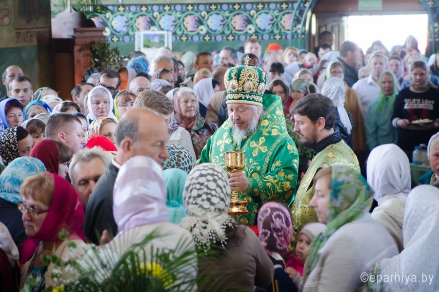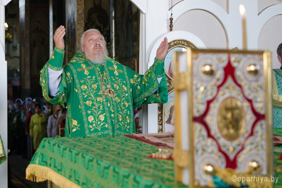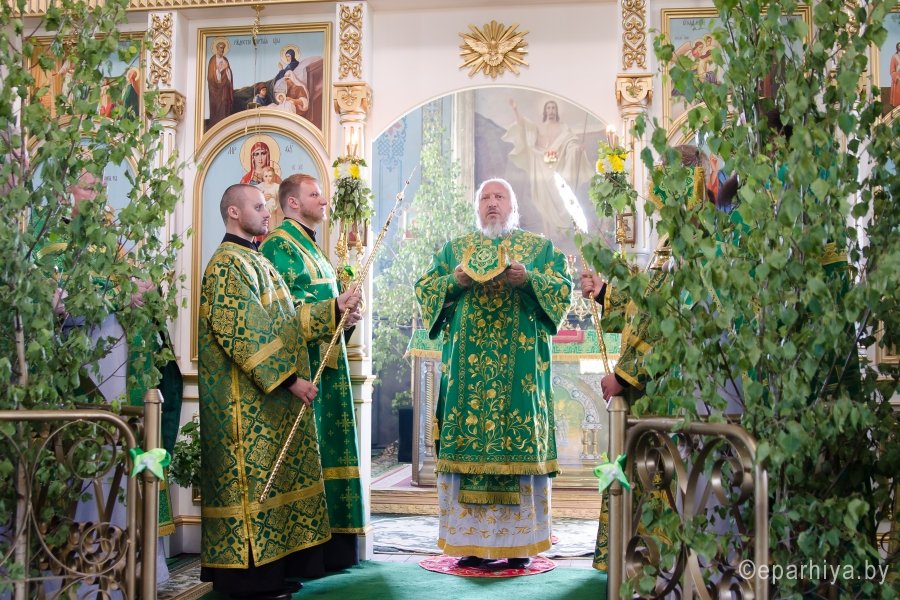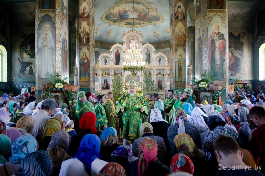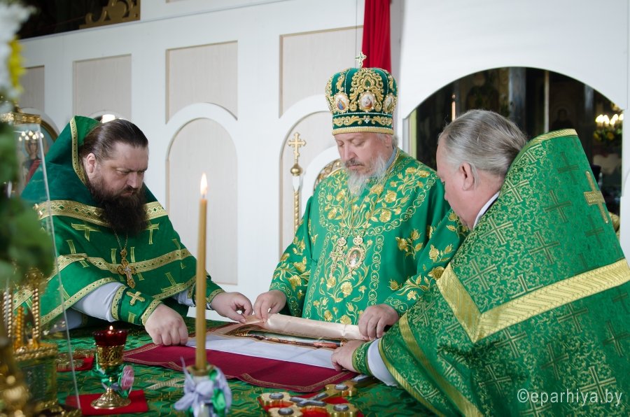 4 июня 2017г., в День Святой Живоначальной Троицы, Преосвященнейший Стефан возглавил Божественную литургию в Свято-Троицком кафедральном соборе г.Жлобина. Преосвященному сослужили: секретарь Гомельской епархии протоиерей Георгий Алампиев, благочинный монастырей Гомельской епархии архимандрит Амвросий (Шевцов), благочинный церквей Жлобинского благочинного округа протоиерей Василий Пилипенко и духовенство собора. По окончании Литургии Владыка совершил великую вечерню праздника Пятидесятницы с чтением коленопреклонных молитв, поздравил причастников с принятием Святых Христовых Таин, возглавил Крестный ход, окропил молящихся святой водой и обратился к молящимся со словами Архипастырского назидания. |