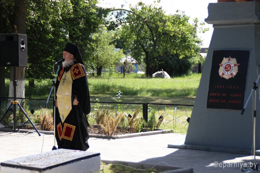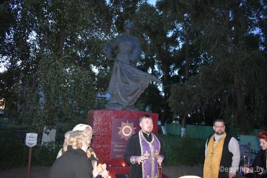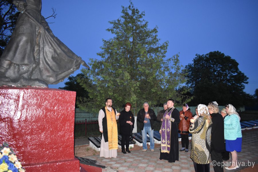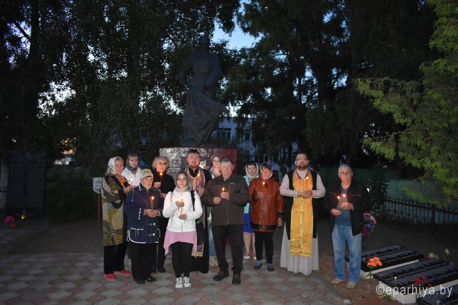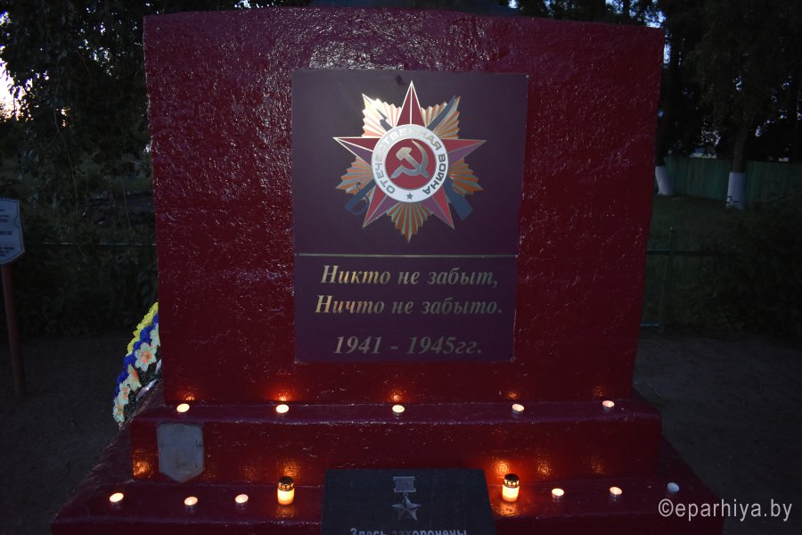 22 июня 2017 г., в Светлогорском благочинии прошла акция «Свеча памяти», приуроченная к 76-летию начала Великой Отечественной войны. В 4.00 православная молодежь с благочинным Светлогорского округа, протоиереем Александром Киселем и настоятелем храма равноапостольного Николая Японского в д. Дуброва иерем Евгением Новиком вместе с сельчанами зажгли свечи на братской могиле погибших воинов в агрогородке Дуброва в память о героях, павших на полях сражений в Великую Отечественную войну. Протоиерей Александр совершил заупокойную литию. Местные жители одновременно зажгли свечи памяти и в своих домах. В братской могиле в д. Дуброва покоятся 2500 воинов, которые отдали свои жизни в тяжелых боях. Священник обратился к присутствующим с напутственным словом о том, что никогда нельзя забывать тех, кто подарил нам жизнь, мирное небо над головой нашим детям и внукам. «Много лет назад, люди ничего не подозревая, подверглись нападению. Враг наших душ тоже никогда не дремлет и может в любую минуту навредить нам, поэтому мы должны стоять на страже своей души, поститься, молиться и посещать храмы», - сказал протоиерей Александр и пожелал помощи Божией, крепости духовных сил. Затем у мемориального комплекса «Багратион» возле д. Раковичи, созданного в честь успешно проведенной крупномасштабной наступательной операции были также зажжены свечи, отслужена заупокойная лития. Мероприятия продолжились на братском захоронение в д. Боровики, где прошел митинг с участием настоятеля храма святых двенадцати апостолов в п. Медков архимандрита Алексия (Желенка), руководства Светлогорского райисполкома, Совета ветеранов, казачества, учащихся и местных жителей. К обелиску на братской могиле были возложены венки и живые цветы. Почтили память всех сожженных в деревне Ола Светлогорского района у памятного знака. Эта деревня практически была уничтожена фашистами и повторила судьбу Хатыни. Здесь в годы Великой Отечественной войны погибли 1758 человек, в том числе 950 детей. Архимандрит Алексий (Желенок) сказал, что светлая память о жителях деревни, принявших мучительную смерть на родной земле, останется навечно в наших сердцах и призвал молиться о всех жертвах войны. В это году в акции приняли участие более 100 человек. |