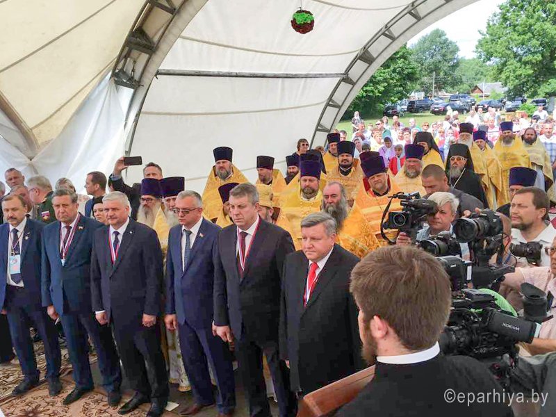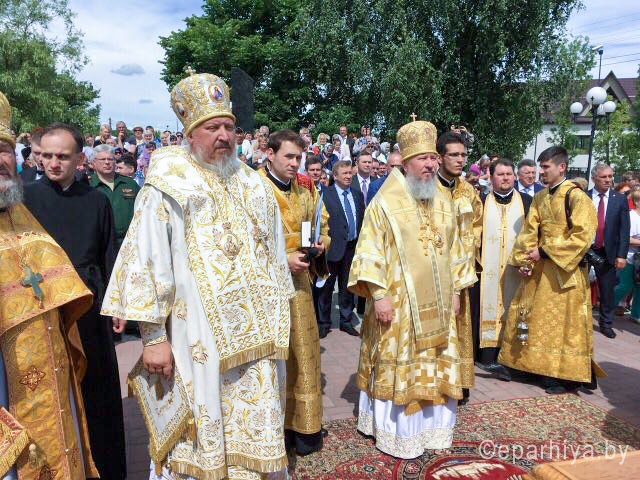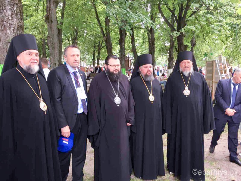 24 июня 2017г. епископ Гомельский и Жлобинский Стефан, принял участие в международном фестивале «Славянское единство 2017», который проходил в г.Клинцы, Российская Федерация. Праздничную Божественную Литургию возглавил высокопреосвященнейший Александр, митрополит Брянский и Севский, в сослужении высокопреосвященнейшего Исидора, митрополита Смоленского и Дорогобужского, епископа Гомельского и Жлобинского Стефана, епископа Щигровского и Мантуровского Паисий, и епископа Трубчевского и Клинцовского Владимира. По отпусте Божественной Литургии состоялось освящение купола и колоколов строящегося Богоявленского Кафедрального Собора. По окончанию Божественной Литургии, почетные гости, международные делегации, представители общественных организаций и объединений, молодежь - возложили цветы и венки к мемориалу «Героям Отечества». Также, в международном фестивале приняла участие делегация Гомельского региона, в которую вошли представители власти, общественных организаций и объединений, молодежь, творческие коллективы, спортсмены - всего около 500 человек. Возглавлял делегацию председатель областного Совета депутатов - Олег Борисенко. Яркие краски фестивалю "Славянское единство" придал международный детский фестиваль "Родник славянской дружбы", стартовавший 22 июня. Также накануне открывшегося лагеря славянской молодежи "Дружба-2017". Участие в нем принимают сотни юношей и девушек, в том числе более 50 представителей Гомельской области - общественные активисты, спортсмены, волонтеры. Сегодня они присоединились к основным событиям фестиваля "Славянское единство-2017". |