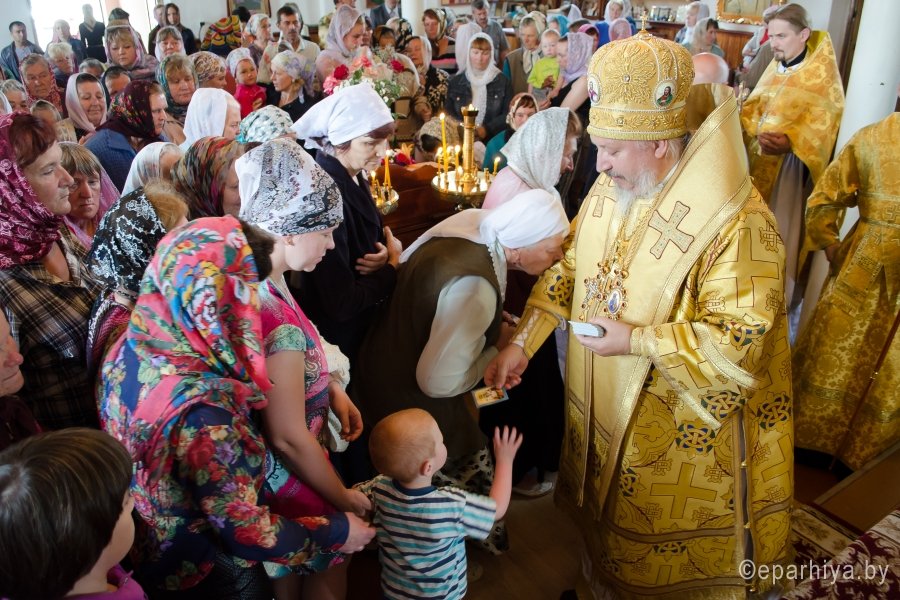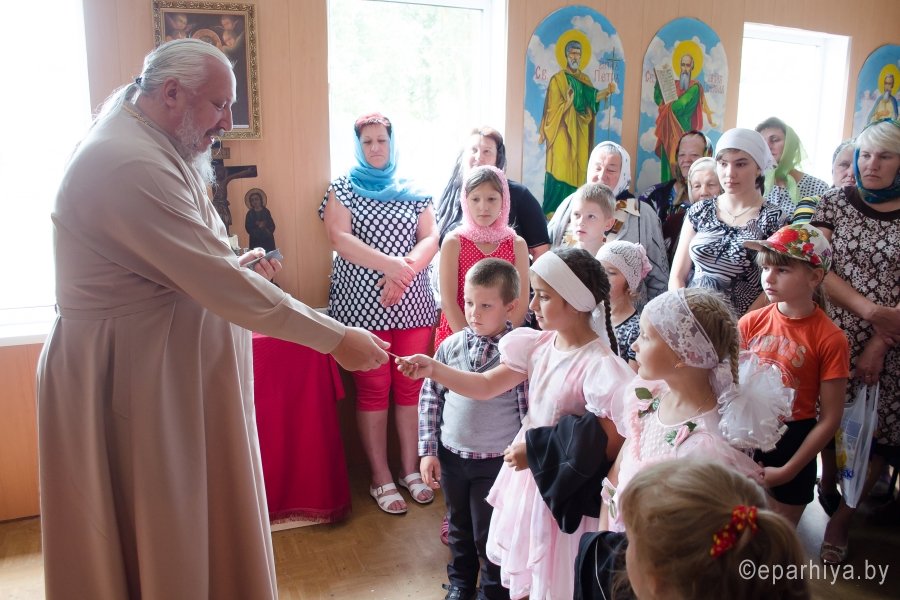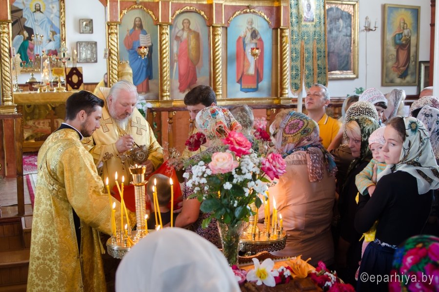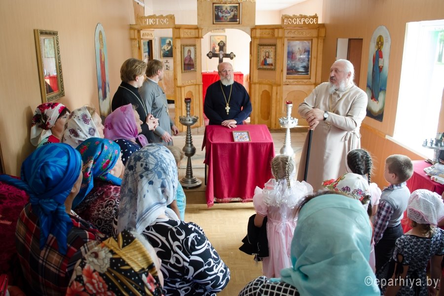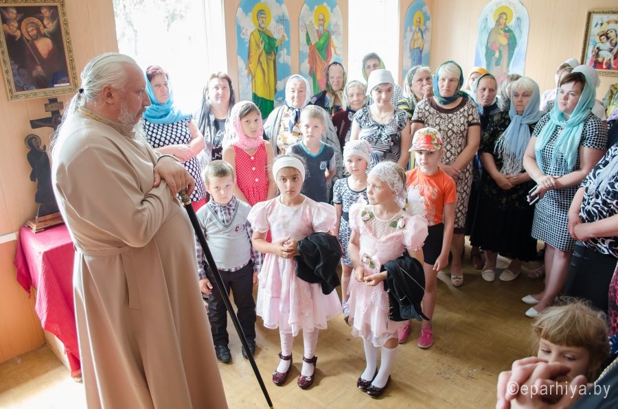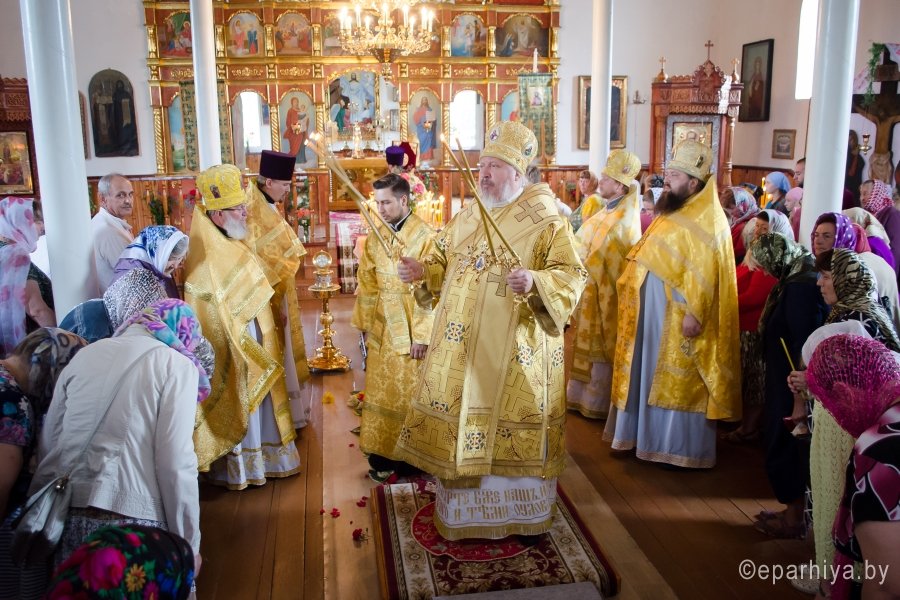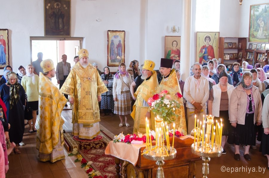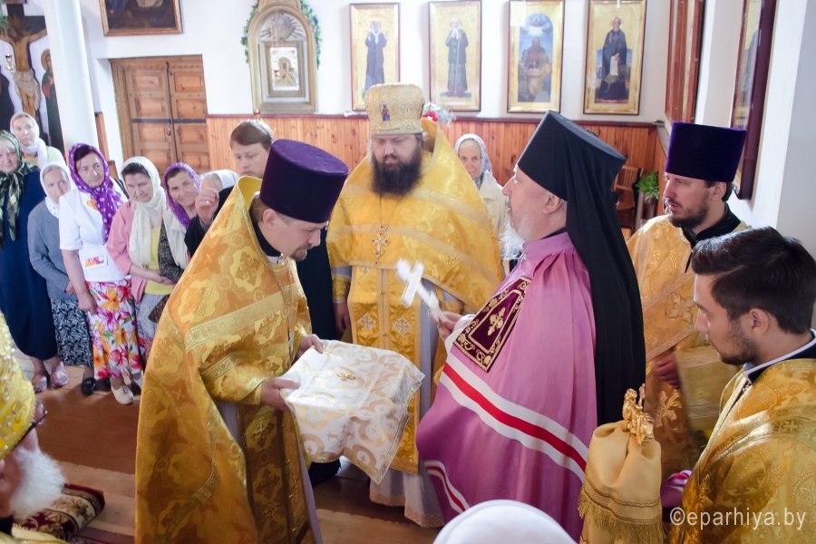 2 июля 2017г., в четвертую неделю по Пятидесятнице, Преосвященный Стефан совершил Божественную литургию в храме свт. Николая Чудотворца в гп. Василевичи. Преосвященному сослужили: секретарь Гомельской епархии протоиерей Георгий Алампиев,благочинный монастырей Гомельской епархии архимандрит Амвросий (Шевцов), благочинный Речицкого округа протоиерей Алексей Пешко и настоятель храма и духовенство епархии. Перед началом Богослужения, Владыка передал в дар храму частицу мощей Святителя Феодосия Черниговского, на постоянное молитвенное пребывание. Днями ранее, по Благословению Преосвященного, в храм, по просьбам верующих гп. Василевичи, были доставлены мощи св. прав. Иоана Кормянского и прп. Манефы Гомельской. По окончании богослужения Владыка поздравил прихожан с воскресным днем. Обращаясь ко всем присутствующим в Архипастырском назидании поздравил причастников с принятием Святых Христовых Таин. В память об этом дне Владыка Стефан раздал молящимся иконки. В ходе своего визита в Речицкий Благочинный округ, Преосвященный Стефан посетил храм Покрова Пресвятой Богородицы д. Защебье и молитвенный дом в д. Ведрич. Владыка ознакомился с состоянием дел на приходах и пообщался с прихожанами. |