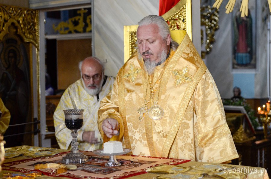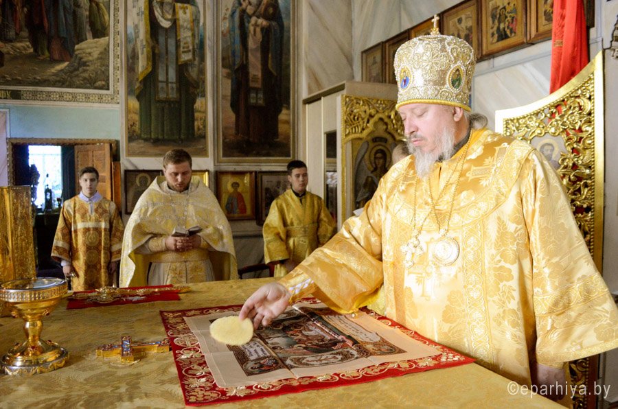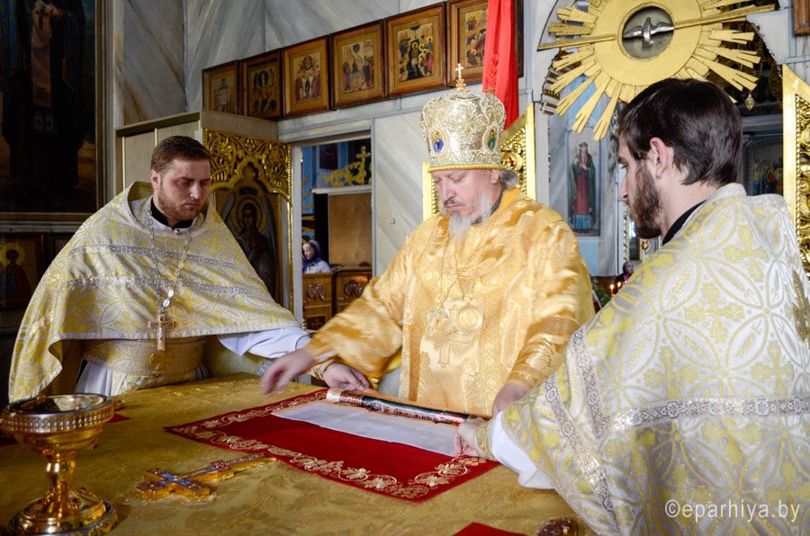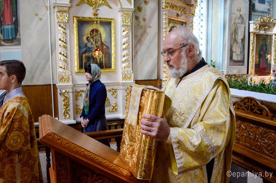 4 июля 2017г., в день обретения мощей преподобного Максима Грека, Преосвященный Стефан в сослужении духовенства собора совершил Божественную литургию в Свято-Петро-Павловском кафедральном соборе г. Гомеля. За богослужением Владыка удостоил настоятеля прихода храма Вознесения Господня пос. Новая Гута иерея Павла Брагинца правом ношения Наперстного креста. По окончании Литургии Преосвященный поздравил причастников с принятием Святых Христовых Таин и обратился к молящимся со словами Архипастырского назидания. |