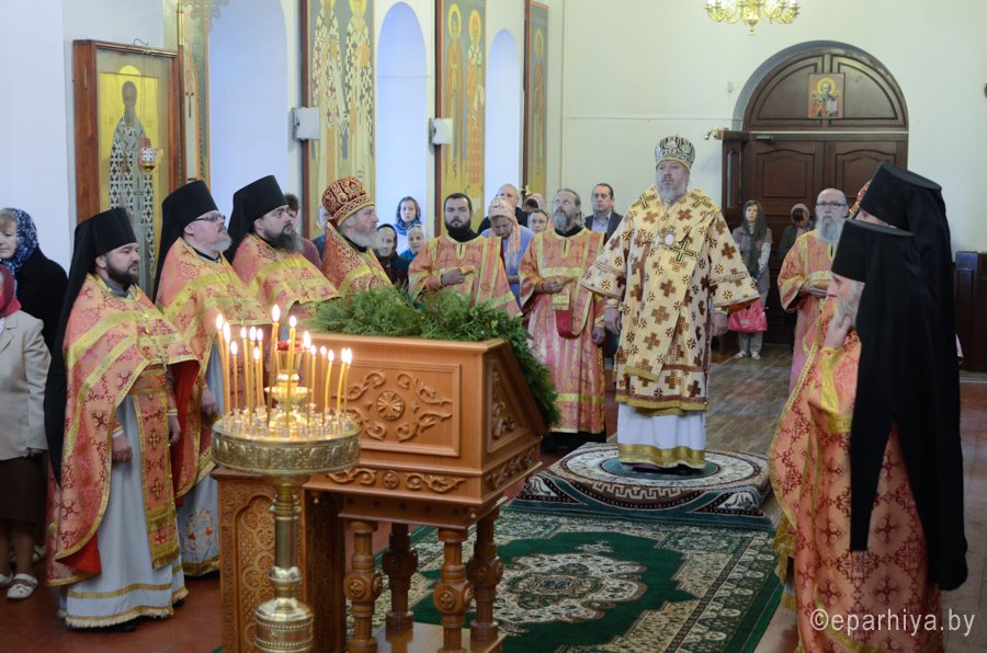 6 июля, в день памяти священномученика Митрофана (Краснопольского), архиепископа Астраханского, первого Гомельского архипастыря (+1919), Преосвященный Стефан, епископ Гомельский и Жлобинский, возглавил Божественную литургию в храме Святителя Николая Чудотворца Свято-Никольского мужского монастыря г. Гомеля. Его Преосвященству сослужили: секретарь Гомельской епархии протоиерей Георгий Алампиев, наместник Никольской обители архимандрит Амвросий (Шевцов) с братией, приглашенное духовенство в монашеском сане. За богослужением молились матушки-настоятельницы женских монашеских общин епархии с сестрами: игумения Вера (Афонькина) (Свято-Тихвинский женский монастырь), игумения Иоанна (Ярец) (Казимировский Свято-Успенский женский монастырь), монахиня Архелая (Новикова) (Свято-Иоанно-Кормянский женский монастырь). Уставные песнопения исполнил молодежный хор Никольского монастыря (регент Харченко Екатерина). Проповедь по запричастном стихе произнес иеромонах Аристарх (Дроздов). Преосвященный Стефан, поздравляя с праздником всех собравшихся в храме, сказал: "Для нашей епархии сегодня особый день. Мы чтим память первого нашего епископа - священномученика Митрофана. Мы ходим по его стопам и стопам всех тех людей, которые также, как и мы, жили, также трудились, радовались и скорбели, но жизнь свою полагали за Господа и Святую Церковь". Владыка выразил надежду, что этот день памяти в нашей епархии будет особо почитаться и получит развитие. По окончании Литургии на монастырском некрополе епископ Стефан возглавил литию по упокоившимся архиепископу Аристарху (Станкевичу) (+2012), схиархимандриту Антонию (Кузнецову) (+2014) и всех приснопонимаемых в этот день священномучениках и исповедниках, пострадавших за веру и Христа. После богослужения в аудитории воскресной школы состоялось монашеское собрание «Гомельское монашество в годы гонений», посвященное 100-летию со дня начала преследований в годы советской власти священнослужителей, монашествующих и мирян, исповедующих православную веру. |