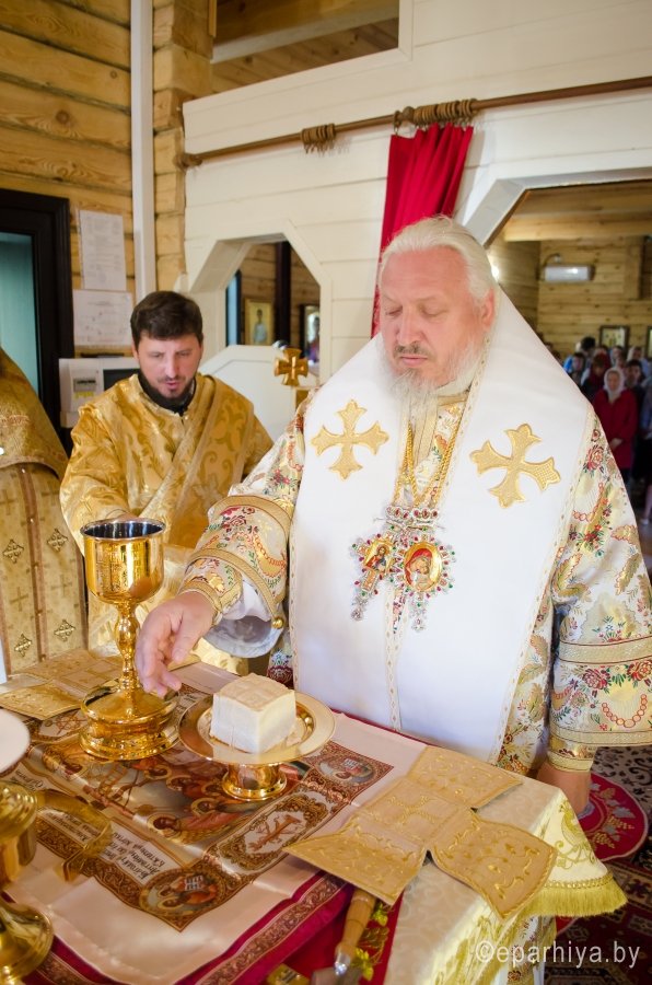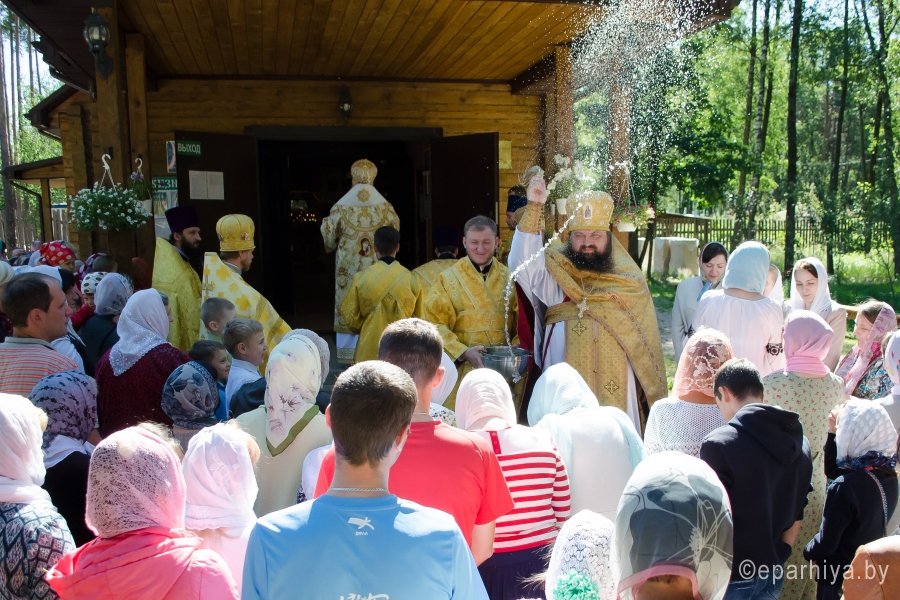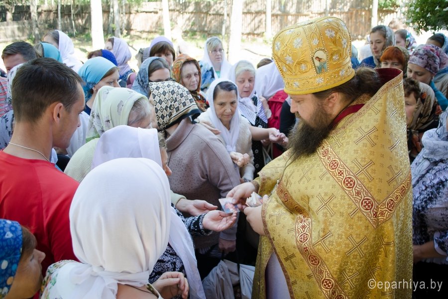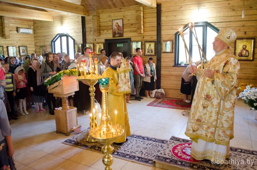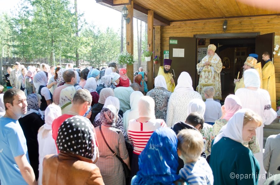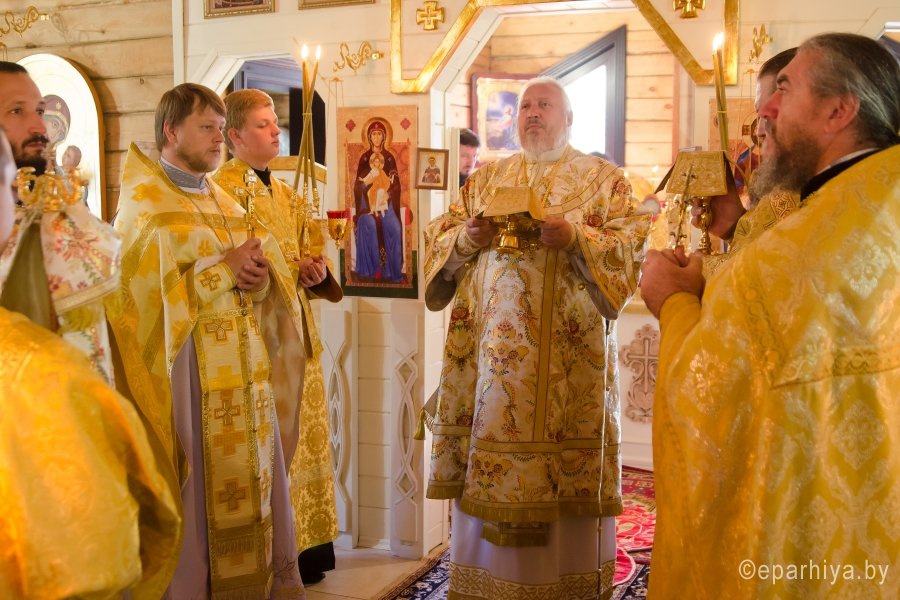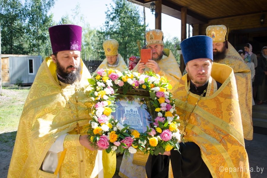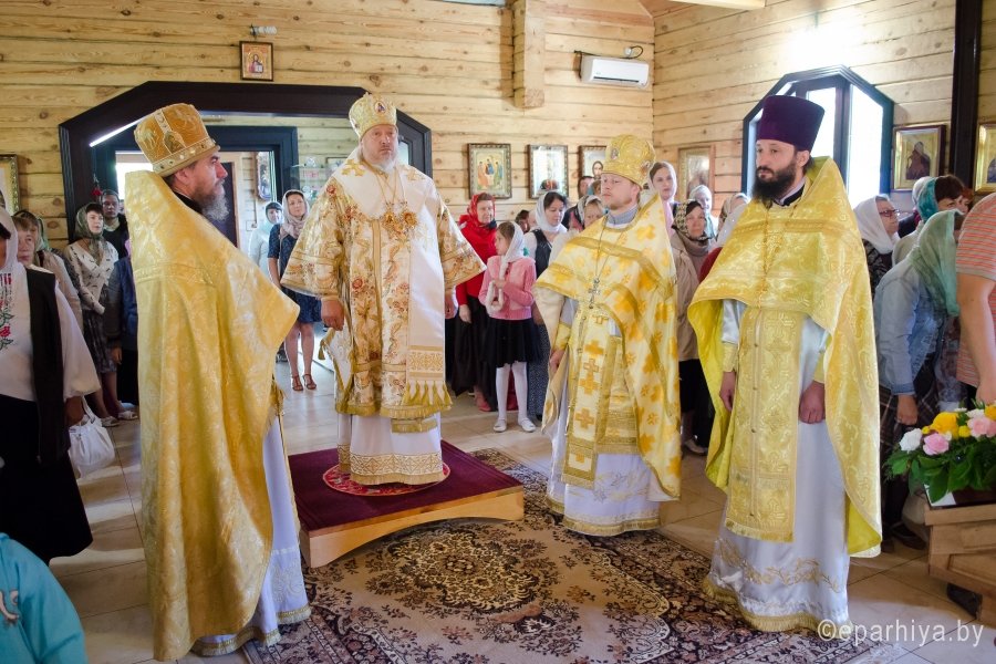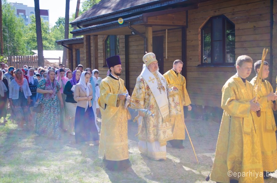8 июля 2017г., в день памяти святых благоверных князей Петра и Февронии Муромских, Преосвященнейший Стефан возглавил Божественную литургию в храме иконы Божией Матери "Отрада и утешение" комплекса прихода храма свв.блгг.кнн. Петра и Февронии Муромских г.Гомеля. Преосвященнейшему сослужили: секретарь Гомельской епархии протоиерей Георгий Алампиев, благочинный монастырей Гомельской епархии архимандрит Амвросий (Шевцов), настоятель храма иерей Вадим Капшук и духовенство епархии. Завершилось Богослужение Крестным ход, который возглавил Владыка Стефан. По окончанию Богослужения Преосвященнейший поздравил всех молящихся с праздником и раздал иконки на память об этом дне. После Владыка Стефан ознакомился с ходом строительства храма на территории комплекса. |