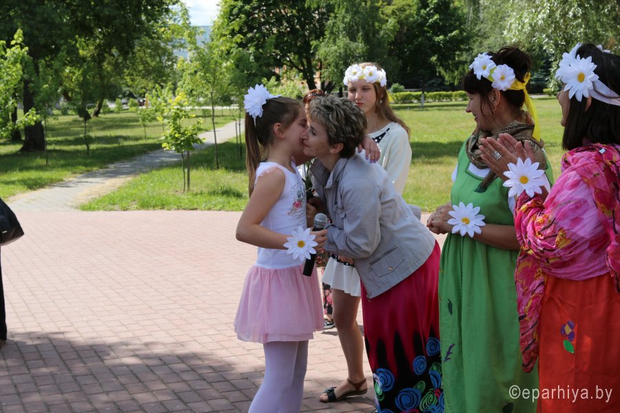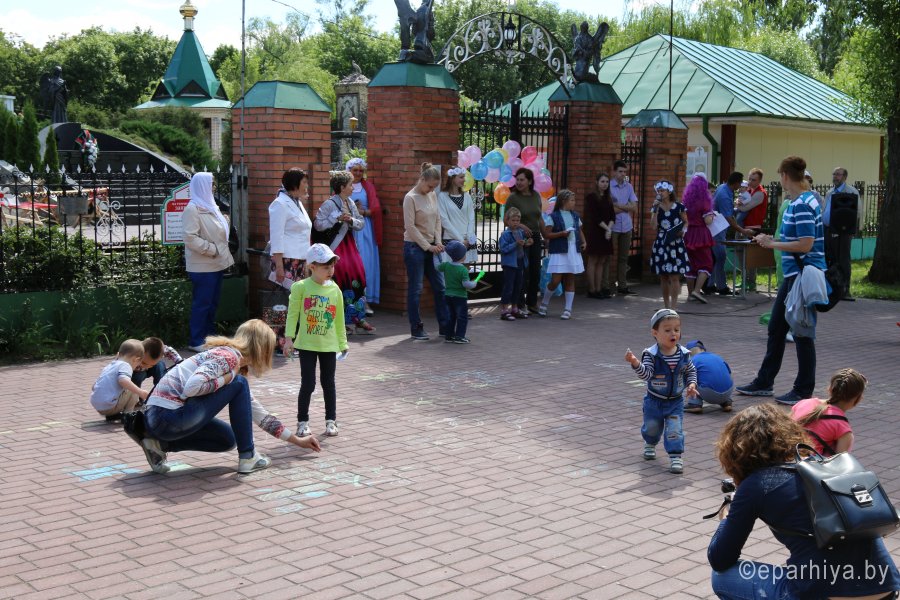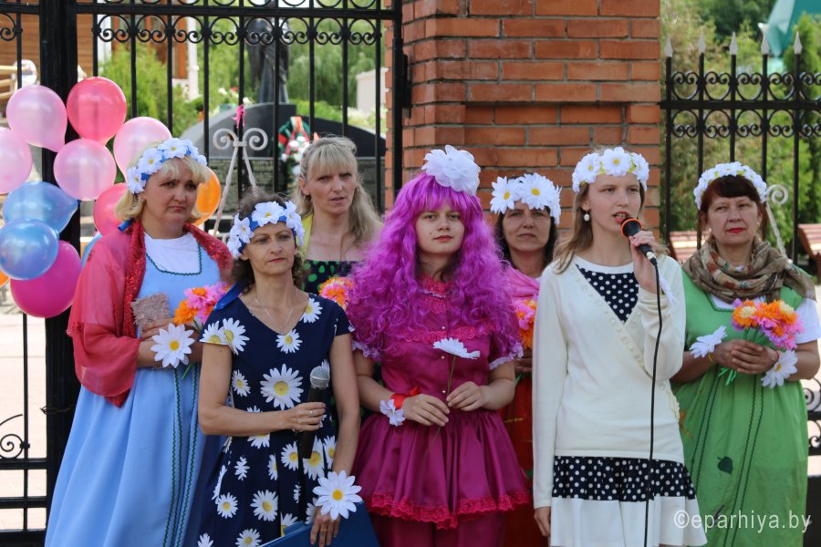 Святые Петр и Феврония Муромские в своей историей вечной любви стали символом супружеской жизни. Они смогли воплотить в ней идеалы христианских добродетелей: кротости, смирения, любви и верности. Именно поэтому в эти дни в храмах Гомельской епархии проходят празднования в честь Дня памяти этих святых. В храме святого Архангела Михаила в г. Гомеле всегда уделялось особое внимание молодым семьям. Каждый может прийти в храм, где для досуга созданы все условия: мини-зоопарк, детская площадка, теплая атмосфера. 8 июля 2017 года, в день памяти святых Петра и Февронии, волонтерам храма был организован семейный праздник. Под песни о главных семейных ценностях малыши смогли показать свое творчество, рисуя цветными мелками на асфальте, родители – проверить эрудированность в импровизированной викторине. В память о праздничном мероприятии каждый желающий смог сделать фото в ромашковой «фотостудии», а также взять с собой частицу любви и тепла – цветок, бережно сделанный волонтерами своими руками. |
