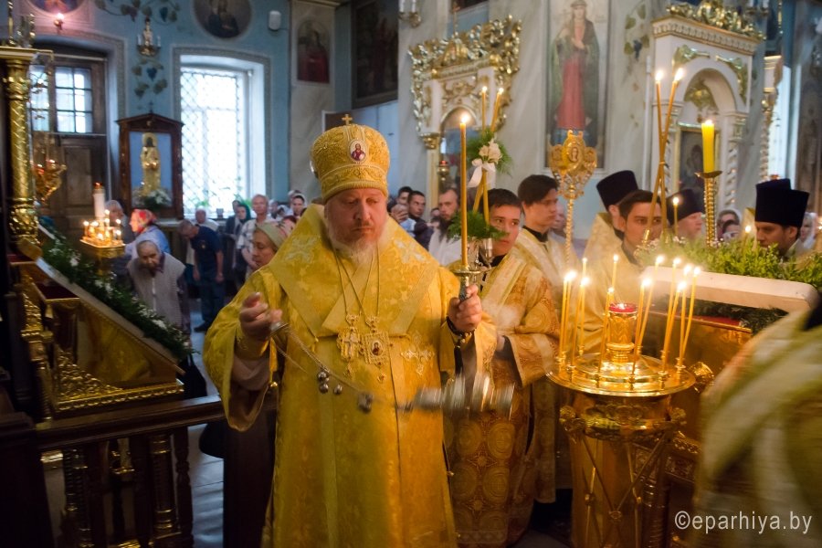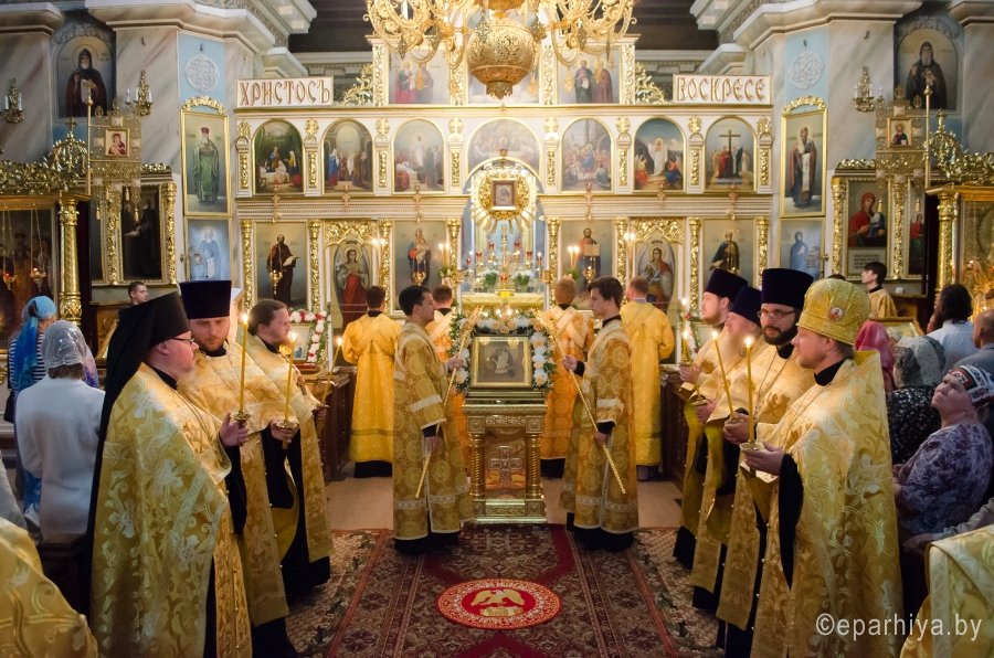 Вечером 8 июля 2017г., в канун Недели 5-й по Пятидесятнице и день памяти Тихвинской иконы Божией Матери, Преосвященный Стефан совершил всенощное бдение в Свято-Петро-Павловском кафедральном соборе г. Гомеля. Преосвященному сослужили: секретарь Гомельской епархии протоиерей Георгий Алампиев и духовенство собора. По окончании богослужения Владыка обратился к молящимся со словами Архипастырского назидания. |