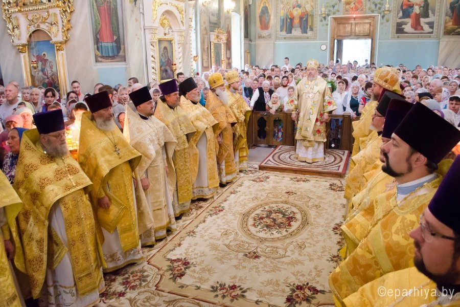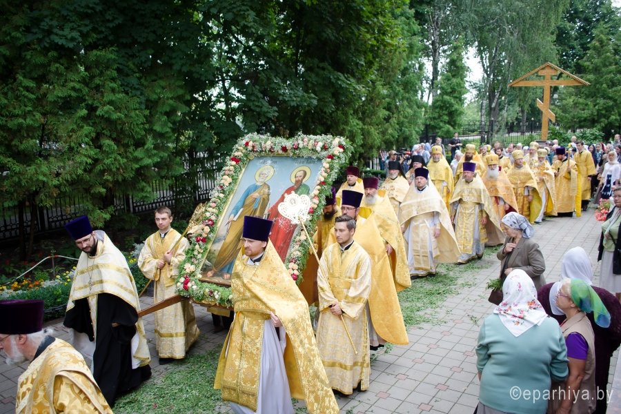 День памяти святого – это великое и памятное событие в жизни каждого верующего и прихода, престольный день памяти в приходе – это главное событие для его прихожан и духовенства. 12 июля 2017г., в день памяти славных и всехвальных первоверховных апостолов Петра и Павла, в одноименном кафедральном соборном храме г. Гомеля, при многочисленном стечении верующих праздничную Божественную литургию совершил Преосвященный Стефан, епископ Гомельский и Жлобинский. Преосвященному сослужили: секретарь Гомельской епархии протоиерей Георгий Алампиев, благочинный монастырей Гомельской епархии архимандрит Амвросий (Шевцов), духовник Гомельской епархии протоиейрей Стефан Гладыщук, Председатели отделов, благочинные округов Гомельской епархии, настоятели храмов г. Гомеля и духовенство епархии. Богослужебные песнопения исполнил хор Свято-Петро-Павловского кафедрального собора г. Гомеля под управлением регента Ольги Поляковой. За богослужением молились матушки-настоятельницы женских монашеских общин епархии с сестрами: игумения Вера (Афонькина) (Свято-Тихвинский женский монастырь), игумения Иоанна (Ярец) (Казимировский Свято-Успенский женский монастырь), монахиня Архелая (Новикова) (Свято-Иоанно-Кормянский женский монастырь), многочисленные жители и гости города. Душевное успокоение, которым был наполнен весь храм во время службы, казалось, давало ощущение присутствия самих великих апостолов. Проповедь перед Причастием произнес клирик Свято-Петро-Павловского кафедрального собора г.Гомеля протоиерей Александр Лопушанский. По окончании богослужения Владыка возглавил Крестный ход, поздравил причастников с принятием Святых Христовых Таин и обратился к молящимся со словами Архипастырского назидания. |