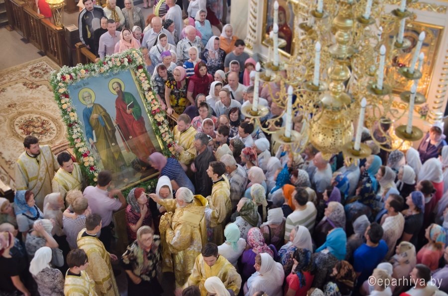 11 июля 2017г., в канун дня памяти святых первоверховных апостолов Петра и Павла, Преосвященный Стефан возглавил всенощное бдение в Свято-Петро-Павловском кафедральном соборе г.Гомеля. Преосвященному сослужили: духовник Гомельской епархии протоиерей Стефан Гладыщук, благочинный Гомельского городского округа протоиерей Игорь Ольшанов и духовенство епархии. По окончании богослужения Владыка обратился к духовенству и прихожанам собора со словами Архипастырского назидания. |