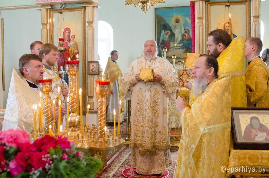 13 июля 2017г., в праздник Собора славных и всехвальных 12-ти апостолов, Преосвященный Стефан возглавил Божественную литургию в храме святых двенадцати апостолов д. Медков. Преосвященному сослужили: секретарь Гомельской епархии протоиерей Георгий Алампиев, благочинный монастырей Гомельской епархии архимандрит Амвросий (Шевцов), настоятель храма архимандрит Алексий (Желенок), Председатель комиссии по канонизации Гомельской епархии протоиерей Александр Лопушанский, благочинный Светлогорского округа протоиерей Александр Кисель и духовенство округа. По окончании богослужения Владыка возглавил Крестный ход, поздравил причастников с принятием Святых Христовых Таин и обратился к молящимся со словами Архипастырского назидания. |