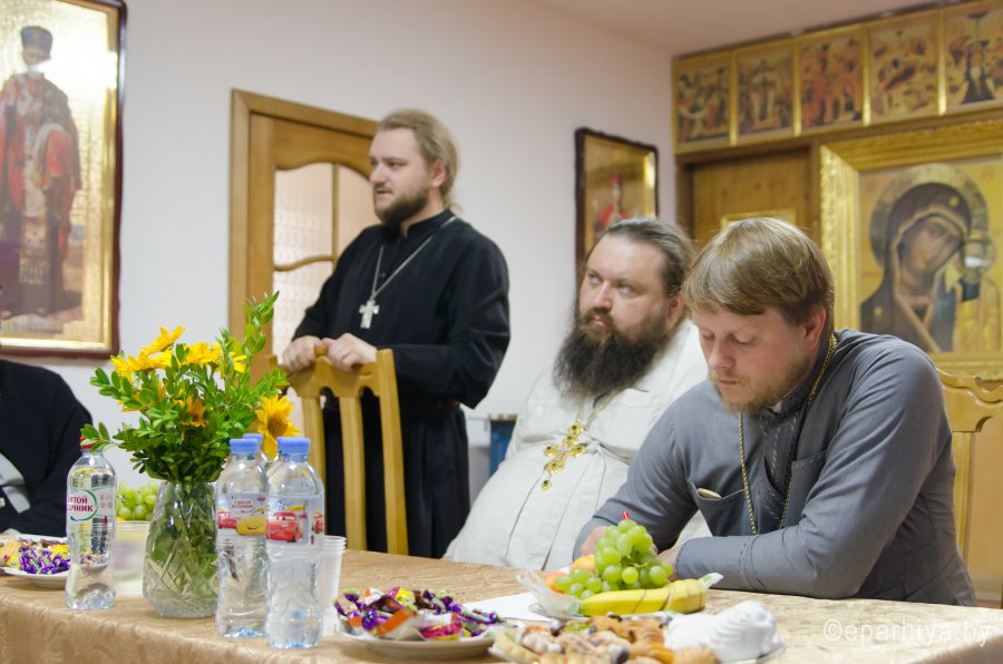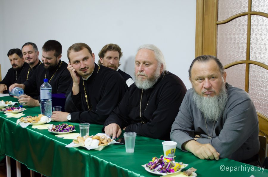 13 июля 2017 г., в Светлогорском благочинии, под председательством секретаря Гомельской епархии протоиерея Георгия Алампиева, состоялась пастырская конференция для священнослужителей Светлогорского, Жлобинского и Рогачевского благочиний по теме «Пастырь в современном мире». На конференции присутствовал благочинный монастырей Гомельской епархии, наместник Гомельского Свято-Никольского мужского монастыря архимандрит Амвросий (Шевцов). Конференция проводилась в формате открытого дискуссионного клуба, где каждый священник смог высказаться по тому или иному вопросу, тем более, что неформальная атмосфера способствовала теплому взаимному общению. Открывая заседание архимандрит Савва (Мажуко) обозначил проблемное поле в вопросе «Проповедь Евангелия». В своем сообщении он говорил о необходимости проповеди Евангелия языком, понятным современному человеку. Продолжая дискуссию протоиерей Артемий Кривицкий поднял вопрос о возможности пастырства через социальные сети. Предложенные вопросы вызвали живые отклики участников конференции, которые не только озвучили свои мнения относительно проблемного поля конференции, но и предложили новые темы для обсуждения. Все присутствующие высказались о необходимости проведения таких конференций для развития общения между духовенством, обмена опытом, разрешения вопросов пастырской практики. |