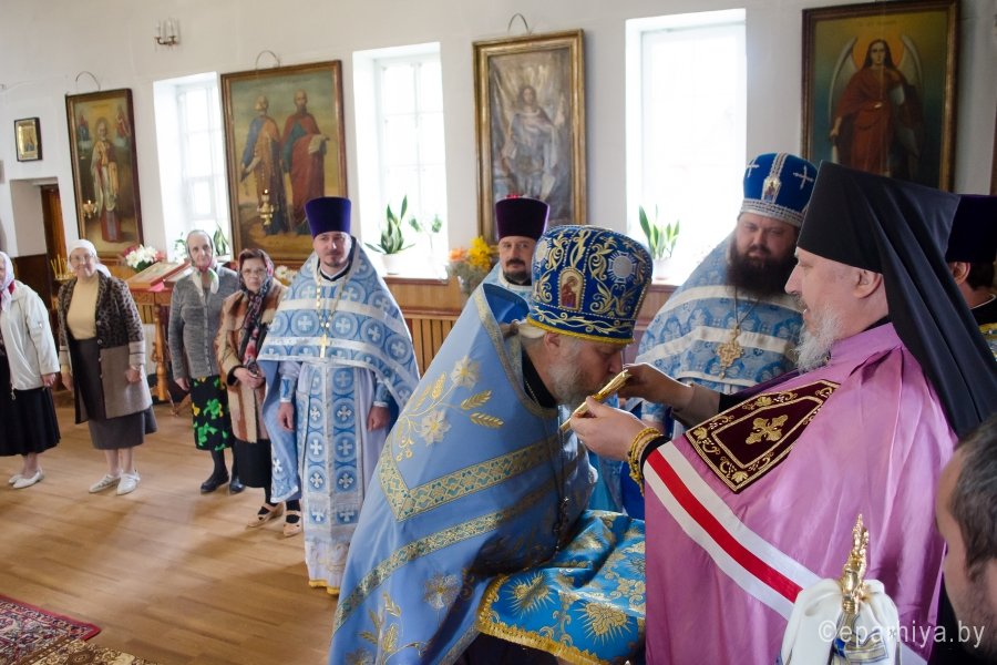 15 июля 2017г., в субботу 6-й седмицы по Пятидесятнице, Преосвященный Стефан совершил Божественную литургию в храме св. блг. кн. Александра Невского г. Рогачева. Преосвященному сослужили: благочинный монастырей Гомельской епархии архимандрит Амвросий (Шевцов), благочинный Рогачевского округа протоиерей Алексий Смотрицкий и духовенство округа. По окончании богослужения Владыка поздравил причастников с принятием Святых Христовых Таин, обратился к молящимся со словами Архипастырского назидания и в память об этом дне раздал всем присутствующим иконки. |