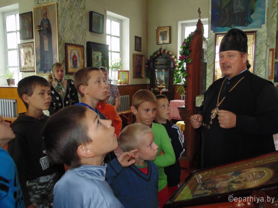 16 июля 2017 года храм святителя Николая Чудотворца в г. Добруше посетили ребята из семей, находящихся под социальной защитой государства. Это дети в возрасте от семи до шестнадцати лет. Для них в городе организован летний оздоровительный лагерь круглосуточного пребывания с интересной разнообразной программой. Посещение храма организаторы включили в список обязательных мероприятий лагеря. С ребятами встретился настоятель, благочинный округа протоиерей Алексий Пилипенко. Состоялась беседа о различных вещах, которые должен знать и уметь любой, приходящий в храм: как устроен храм, что такое иконы, как правильно креститься и что означает таинство Причащения. Затем священник рассказал о самом сокровенном помещении храма - об алтаре, показал кадило и ладан. После этого священнослужитель ответил на возникшие вопросы, а сотрудники храма с помощью календаря помогали желающим определить день своих именин. В завершение все получили сладкие подарки. |