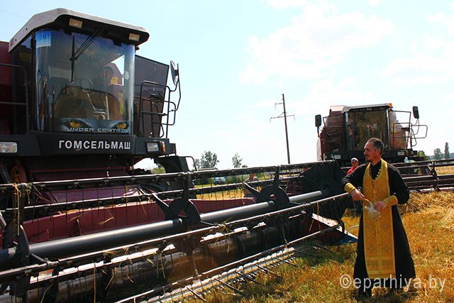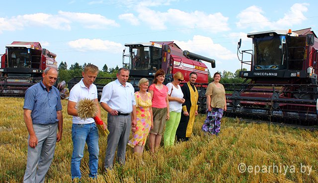Традиционными «Зажинками» началась уборка урожая зерновых в Кормянском районе. На празднике присутствовали председатель Кормянского райисполкома Алексей Ясонов, исполняющая обязанности начальника управления сельского хозяйства и продовольствия Валентина Царанкова, управляющий делами райисполкома Александр Белый, начальник отдела идеологической работы, культуры и по делам молодежи Светлана Козлова и редактор районной газеты Татьяна Климова. Вместе с комбайнерами в поле был руководитель сельхозпредприятия КСУП «Лепешинский» Михаил Дмитриев. Участницы фольклорного коллектива «Луца» из Октябрево начали «Зажинки» с благодарения Бога и родной земли за урожай, данный людям за их труд, и прошения о помощи в его уборке. Они же попросили православного священника благословить сельчан на начало доброго дела. Настоятель храма Святителя Николая Чудотворца иерей Виталий Лехнович совершил молебен, благословил присутствующих и окропил освященной водой комбайнеров и технику. Он пожелал всем крепости духа и физических сил, ведь труд хлебороба нелегок: порой приходится работать и днем, и ночью, почти без отдыха, пользуясь благоприятной погодой. Каждый понимает ответственность и ценность времени в эту горячую пору. Также очень важна в уборочной готовность всей используемой техники к тяжелым нагрузкам, работа без поломок. На этом сделал акцент и председатель райисполкома Алексей Ясонов, он выразил надежду, что зерно будет собрано вовремя и в полной мере, пожелал всем успехов и здоровья. Под народную песню женщины сжали первый сноп и символически вручили его руководителю сельхозпредприятия. А главе района преподнесли пышный каравай из зерна прошлого урожая, который разделили между всем участниками обрядового праздника «Зажинки». |