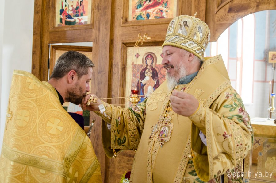 28 июля 2017г., в день памяти равноапостольного великого князя Владимира, Преосвященный Стефан совершил Божественную литургию в храме иконы Божией Матери "Грузинская" г. Гомеля. Преосвященному сослужили: секретарь Гомельской епархии протоиерей Георгий Алампиев, благочинный Гомельского городского округа протоиерей Игорь Ольшанов и настоятель прихода протоиерей Владимир Масалитин. По окончании богослужения Владыка поздравил настоятели храма Грузинской иконы Божией Матери протоиерея Владимира Масалитина с Днем Ангела и преподнес в дар наперсный крест. Затем Преосвященный Стефан поздравил причастников с принятием Святых Христовых Таин, обратился к молящимся со словами Архипастырского назидания и в память об этом дне раздал всем иконки. |