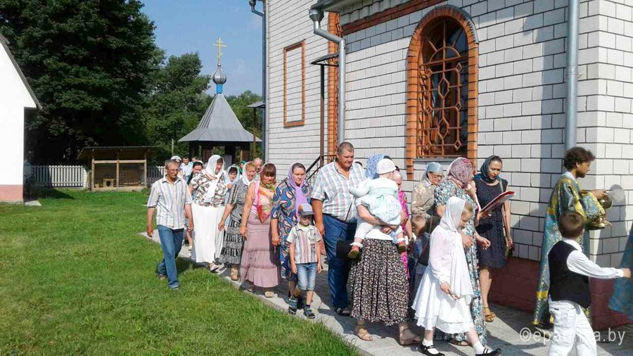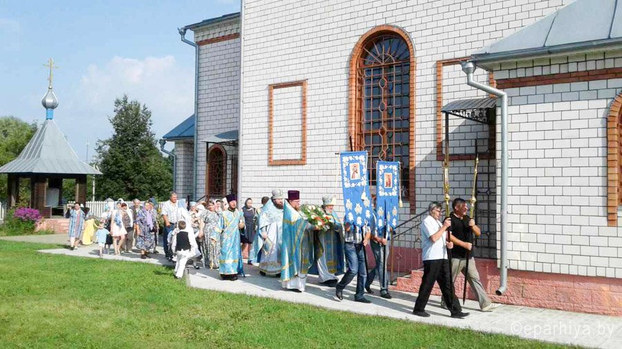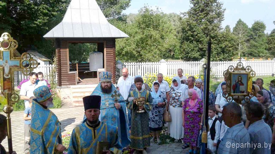 5 августа 2017г., в день празднования Почаевской иконы Божией Матери, Божественную литургию в одноименном храме д. Борщёвка совершил благочинный монастырей Гомельской епархии, наместник Свято-Никольского мужского монастыря г. Гомеля архимандрит Амвросий (Шевцов). Его высокопреподобию сослужили: благочинный церквей Речицкого округа протоиерей Алексий Пешко и духовенство округа. По окончании богослужения архимандрит Амвросий (Шевцов) возглавил Крестный ход, поздравил прихожан и духовенство с престольным праздником и обратился со словами проповеди. Почаевская икона Божией Матери находится в Почаевской обители. На горе, где сейчас расположен монастырь, поселились два инока в 1340 году. Один инок после молитвы пошел к вершине горы и, вдруг, увидел Божию Матерь, стоявшую на камне и окруженную пламенем. Он позвал брата посмотреть на чудо. Третьим свидетелем видения был пастух Иоанн Босой. Он взбежал на гору, и они втроем прославили Бога. На камне, где стояла Пресвятая Богородица, навсегда остался отпечаток Ее правой стопы. В 1559 году Константинопольский митрополит Неофит, проезжая через Волынь, посетил жившую в имении Орля, недалеко от Почаева, дворянку Анну Гойскую. В благословение он оставил Анне привезенную из Константинополя икону Богородицы. Стали замечать, что от иконы исходит сияние. Когда перед иконой исцелился брат Анны Филипп, она передала в 1597 г. чудотворный образ инокам, поселившимся на Почаевской горе. Святой образ был поставлен в храм, воздвигнутый в честь Успения Божией Матери. Позже там основан монастырь, на содержание которого Анна Гойская передала большие средства. Чудотворная икона стала называться Почаевской. Среди многих свидетельств о помощи Царицы Небесной известно следующее. Монах Почаевского монастыря был захвачен в плен татарами, Находясь в неволе, он вспоминал Почаевскую обитель, ее святыни, Богослужения, песнопения. Особенно тосковал инок при наступлений праздника Успения Пресвятой Богородицы и слезно молил Божию Матерь об избавлении из плена. И вот, по молитвам Пресвятой Девы, однажды исчезли стены темницы, а инок оказался у стен Почаевской обители. |