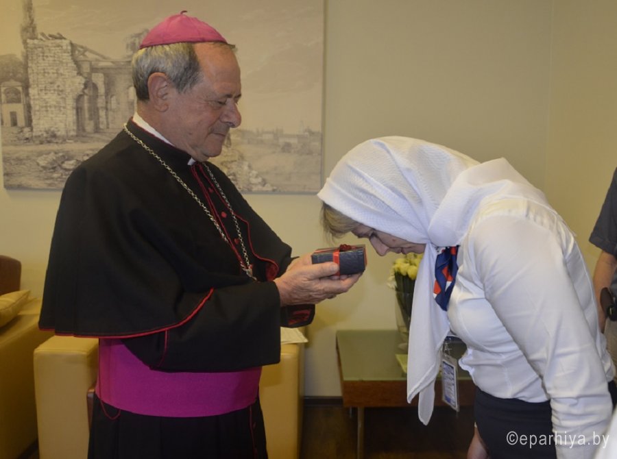 Величайшая святыня - частица мощей святого великомученика, целителя и чудотворца Пантелеимона, извлеченная из ковчега с предплечьем святого - 8 августа доставлена из Рима в Национальный аэропорт «Минск». В канун дня памяти великомученика Пантелеимона святыня передана кафедральным собором города Джераче (Италия) кафедральному собору святых Петра и Павла в Гомеле. Договоренность о постоянном местопребывании святыни на Гомельщине, как помощь в исцелении и благословении верующих Беларуси, была достигнута благодаря участию Патриаршего Экзарха всея Беларуси митрополита Минского и Заславского Павла, Преосвященнейшего епископа Гомельского и Жлобинского Стефана и епископа Локри и Джераче Франческо Олива. У трапа самолета ковчег с частицей мощей святого встретил наместник Свято-Никольского мужского монастыря г. Гомеля архимандрит Амвросий (Шевцов). Православную реликвию в Национальном аэропорту «Минск» встречают не первый раз: год назад, 1 августа, ковчег с предплечьем святого великомученика, целителя и чудотворца Пантелеймона впервые за 350 лет покинули место своего пребывания – кафедральный собор в городе Джераче и был доставлены в Беларусь. Тогда культурный и профессиональный уровень работы сотрудников таможни «Минск-2» заслужил слова искренней благодарности епископа Гомельского и Жлобинского Стефана: «… хочу поблагодарить сотрудников таможни «Минск-2» за организацию встречи и проводов святыни на самом высоком уровне, оставившее неизгладимое впечатление у наших гостей…». |