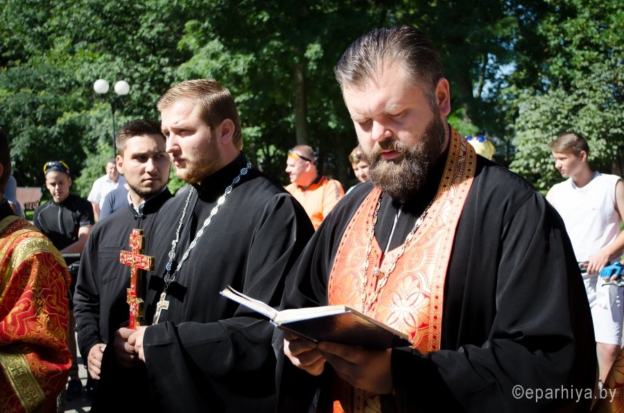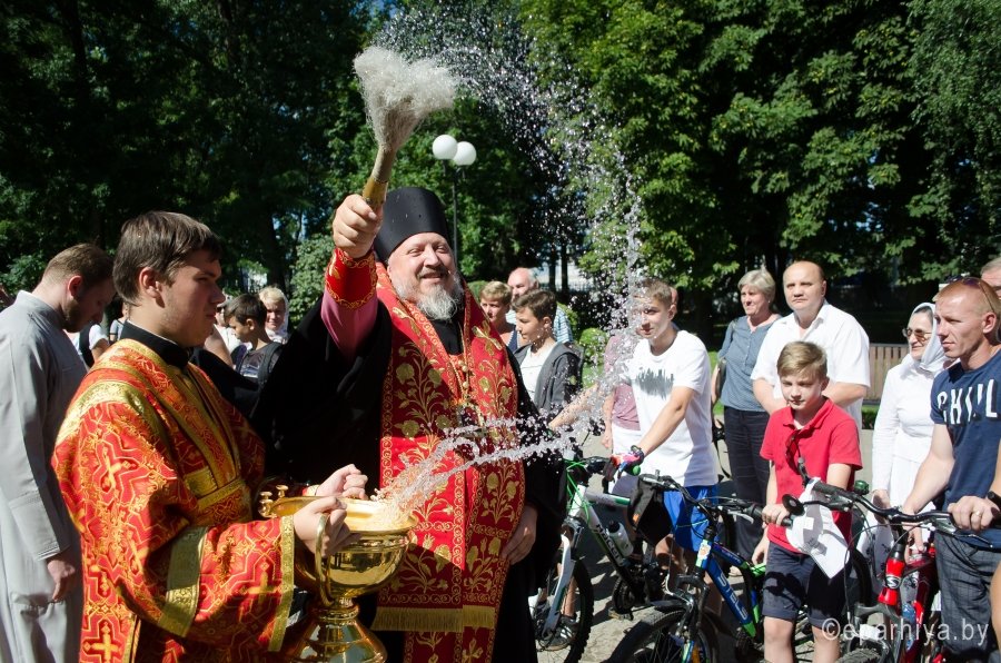 По завершении Божественной литургии Преосвященный Стефан совершил чин благословения в путешествие, окропил святой водой и благословил юных участников велопробега.