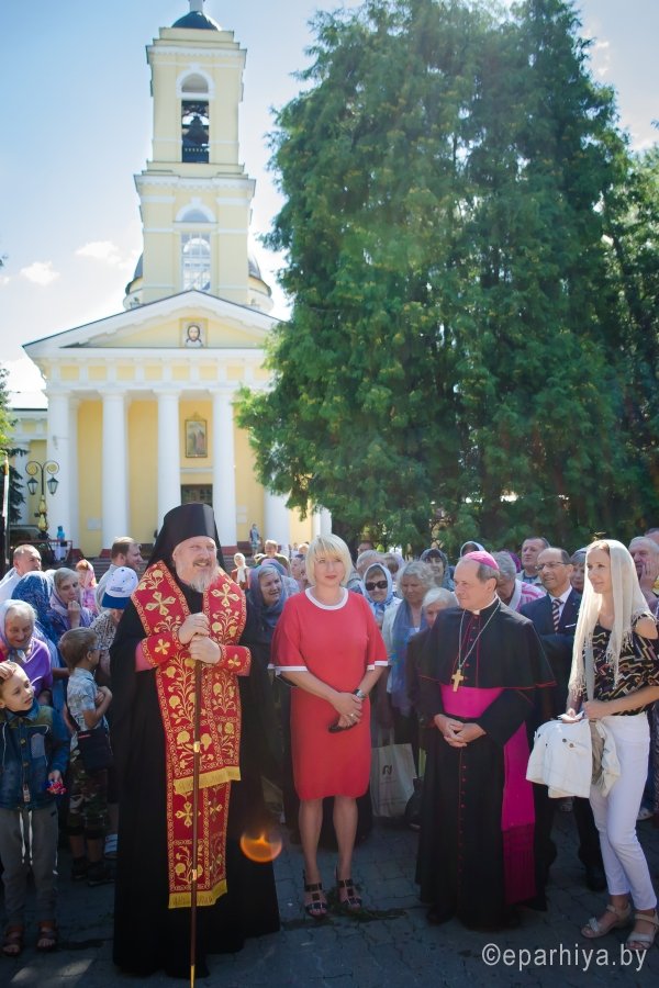 Делегация из Италии, во главе c епископом Локри и Джераче Франческо Олива, доставившая в этот день частицу мощей святого великомученика Пантелеимона в гомельский кафедральный собор святых первоверховных апостолов Петра и Павла, пожелала ребятам Божией помощи в пути.
