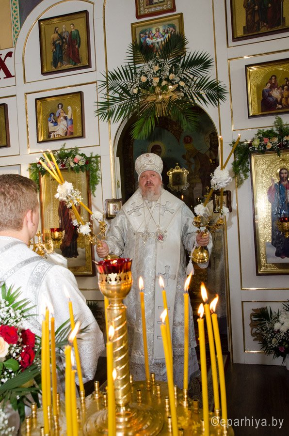 18 августа 2017г., в канун праздника Преображения Господа Бога и Спаса нашего Иисуса Христа, Преосвященный Стефан совершил всенощное бдение в Спасо-Преображенском храме г. Гомеля. Преосвященному сослужили: секретарь Гомельской епархии протоиерей Георгий Алампиев, благочинный монастырей Гомельской епархии архимандрит Амвросий (Шевцов), духовник Гомельской епархии протоиерей Стефан Гладыщук, благочинный Гомельского районного округа протоиерей Артемий Кривицкий, благочинный Гомельского городского округа протоиерей Игорь Ольшанов и духовенство епархии. По окончании богослужения Владыка обратился к молящимся со словами Архипастырского назидания. |