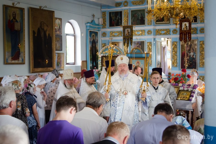 21 августа 2017г., в праздник Толгской иконы Божией Матери, Преосвященный Стефан совершил Божественную литургию в храме Покрова Пресвятой Богородицы г. Речица. Преосвященному сослужили: благочинный монастырей Гомельской епархии архимандрит Амвросий (Шевцов), благочинный Речицкого округа протоиерей Алексий Пешко и духовенство округа. По окончании богослужения Владыка поздравил причастников с принятием Святых Христовых Таин, обратился к молящимся со словами Архипастырского назидания и в память об этом дне раздал всем присутствующим иконки. |