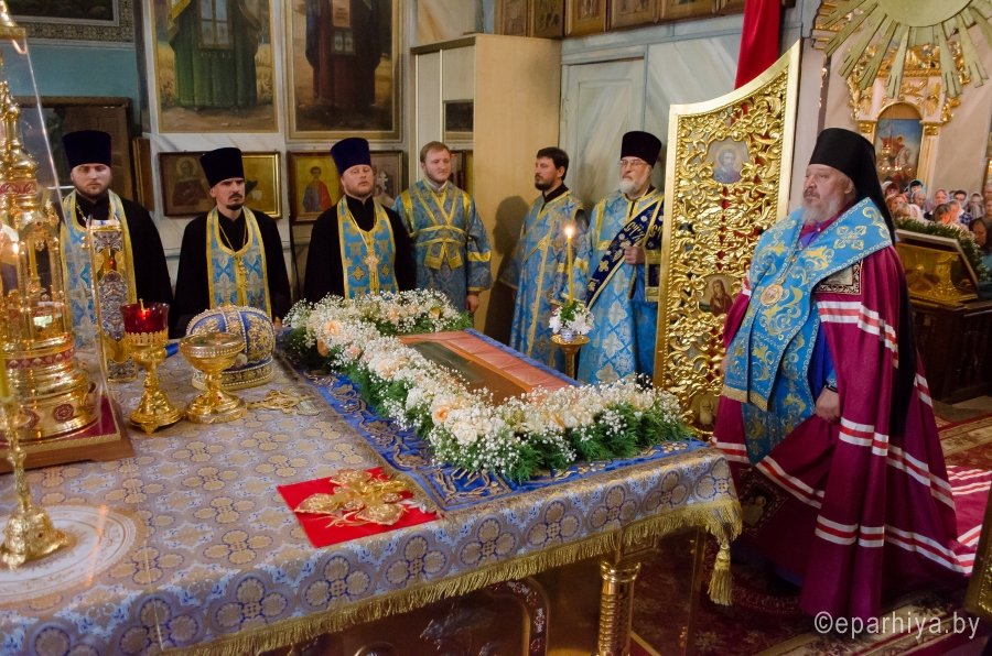 27 августа 2017г., в канун праздника Успения Пресвятой Владычицы нашей Богородицы и Приснодевы Марии, Преосвященнейший Стефан совершил всенощное бдение с чином выноса Плащаницы в Свято-Петро-Павловском кафедральном соборе г. Гомеля. Преосвященнейшему сослужили: секретарь Гомельской епархии протоиерей Георгий Алампиев и духовенство собора. По окончании богослужения Владыка обратился к молящимся со словами Архипастырского назидания. |