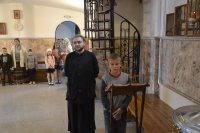 30 августа в надвратном храме преподобного Дионисия Радонежского Свято-Никольского мужского монастыря г. Гомеля была совершена очередная детская литургия. Богослужение совершил наместник монастыря архимандрит Амвросий (Шевцов). За богослужением молились и пели, под руководством архимандрита Саввы (Мажуко) воспитанники воскресной школы и маленькие прихожане обители со своими родителями. После запричастного стиха священнослужитель поздравил детей с наступающим учебным годом и пожелал успешной учёбы. Затем все причастились Святых Христовых Тайн. По окончании литургии были прочитаны молитвы перед началом учёбы и все были окроплены святой водой. |