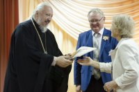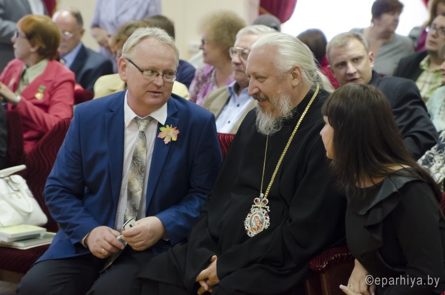 1 сентября 2017г. Преосвященнейший Стефан, епископ Гомельский и Жлобинский в сопровождении Председателя Информационного отдела Гомельской епархии протоиерея Олега Костромы приняли участие в международном литературном фестивале "Литературные дожинки - 2017", проводимом в Гомельской областной универсальной библиотеке. Словами приветствия открыл фестиваль Владимир Николаевич Гаврилович - председатель Гомельского областного отделения ОО «Союз писателей Беларуси». Затем со словами поздравления ко всем присутствующим обратился Преосвященнейший Стефан: «Я рад видеть здесь представителей трех братских республик: Беларуси, России и Украины. Книга и слово не имеют границ, они в одиннадцатый раз объединяют нас под крышей Гомельской областной библиотеки в рамках проходящего фестиваля. Я желаю организаторам и гостям фестиваля помощи Божией в их дальнейших творческих начинаниях.» В ходе мероприятия Владыка вручил дипломы и памятные подарки победителям конкурса «Православие — моя надежда!», организованного Гомельской епархией совместно с Гомельским областным отделением ОО «Союз писателей Беларуси». В этом году для участия в конкурсе поступило 55 работ в пяти номинациях. Члены жюри рассмотрели произведения в номинации «Проза»: первое место и гран-при присудить Гавриловичу Владимиру Николаевичу за сборник рассказов. В номинации «Публицистика» первое место не присуждать никому в связи с малым количеством работ, представленных на конкурс. В номинации «Поэзия»: рекомендуем присудить первое место Спасибиной Инне Николаевне за цикл стихотворений. Второе место Ветошкину Валерию Леонидовичу за цикл стихотворений. Третье место Ахрамене Раисе Яковлевне за цикл стихотворений. В номинации «Детская литература»: первое место присудить Атрощенко Анна Николаевна за рассказ «Танiна зорачка». Второе место Радионовой Галине Владимировне за стихотворение «Сказ о двух Лазарях». Третье место Рожковой Анне Руслановне за рассказ «Картина». В номинации «Авторская песня»: первое место присудить Бондарю Виталию Геннадьевичу за песню «В двух шагах от рая». Информационным отделом Гомельской епархии были подготовлены и изданы малым тиражом книги победителя конкурса 2016 года поэтессы Веры Федоровны Кветковской «Лучик добра». |