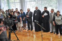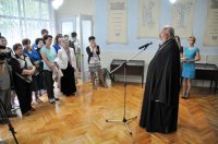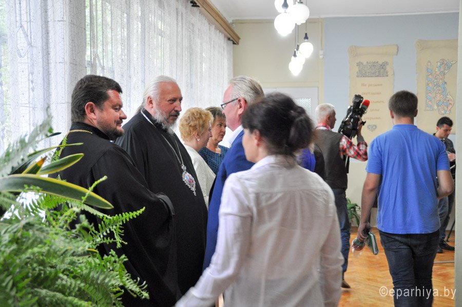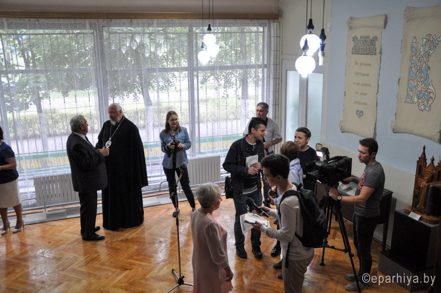 4 сентября Преосвященный Стефан в сопровождении Председателя Информационного отдела Гомельской епархии протоиерея Олега Костромы приняли участие в празднике белорусской письменности «Спадчына беларускіх асветнікаў», который состоялся в библиотеке-филиале №8 г. Гомеля. В мероприятии также приняли участие кандидат экономических наук, доцент Гомельского государственного университета имени Ф. Скорины Селицкий Валерий Степанович, представители горисполкома и администрации Советского района, средств массовой информации, общественность города. 500-летие белорусского книгопечатания – знаковая дата не только нашей отечественной истории и культуры, но и всего славянского мира. Белорусам есть чем гордиться. Просветители белорусского народа – фигуры европейского масштаба. Символично, что в год 500-летия белорусского книгопечатания и 875-летия нашего города библиотеке-филиалу №8 присвоено имя Великого святителя Земли Белорусской, гуманиста и выдающегося славянского литератора Кирилла Туровского. Познакомить горожан с наследием великого просветителя призвана экспозиция с элементами стенной росписи, в которой помимо сведений о Кирилле Туровском и его трудах, представлены факсимиле Туровского Евангелия, камень из основания Борисоглебского монастыря города Турова, деревянная скульптура, посвященная выдающемуся сыну белорусской земли, подаренная библиотеке епископом Гомельским и Жлобинским Стефаном. Более 20 лет библиотека позиционирует себя как Духовно-просветительский центр и в настоящее время обладает обширной коллекцией книг, в том числе православных. В разное время для жителей района в стенах библиотеки работали воскресная школа для взрослых и юношества, школа милосердия. По инициативе священнослужителей храма иконы Божией Матери «Всех скорбящих Радость» в библиотеке была начата работа по изданию газеты «Лампада». Сейчас это духовно-просветительский журнал «Сретенье». Сегодняшний день библиотеки – благотворительные акции-посещения домов для престарелых и инвалидов, встречи со священнослужителями, писателями Гомельщины, лауреатами премии имени Кирилла Туровского. На празднике были награждены победители конкурса-викторины «Кирилл Туровский и его наследие», организованного совместно с газетой «Советский район». |
