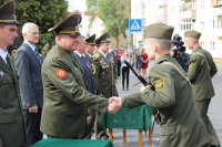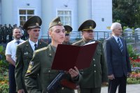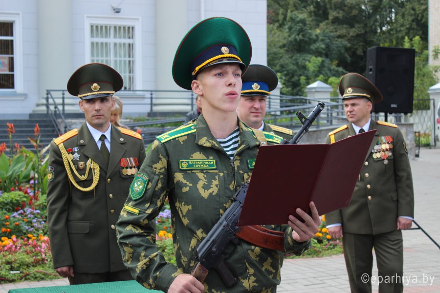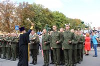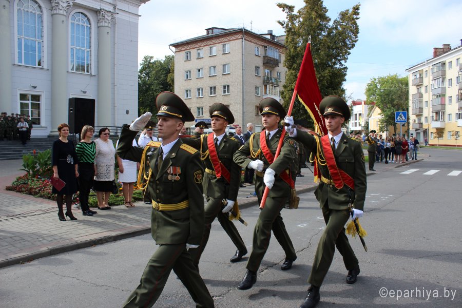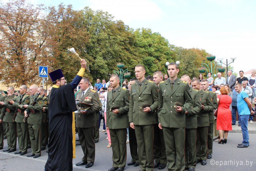 Принятие военной присяги – очередной шаг военнослужащего к становлению, осознание важности долга перед своей Отчизной, народом, домом, семьей в их защите. Вот уже месяц как курсанты I курса военно-транспортного факультета постигали основы военной, идеологической и духовной составляющей своей Родины, преобразившись из вчерашних мальчишек в настоящих мужей, они подошли к этому важному этапу своей жизни. 2 сентября 2017 года 30 курсантов ВТФ принесли военную присягу – самую важную клятву в своей жизни, обязуя себя посвятить свою жизнь защите незыблемых ценностей каждого гражданина – своей родной Беларуси. Под утренним ясным небом на площади Победы у храмов знаний – Гомельской областной универсальной библиотеки им.Ленина и Белорусского государственного университета транспорта, срывающимися мальчишескими голосами звучали слова священной клятвы. С торжественным событием юных военнослужащих поздравили: начальник Департамента транспортного обеспечения Министерства обороны Республики Беларусь полковник Шаплавский Ю.И., ректор университета доктор физико-математических наук Кулаженко Ю.И., начальник направления идеологической работы и социальной защиты Гомельского областного военного комиссариата Гомельской области полковник Гончаров Г.В., начальник отдела идеологической работы, культуры и по делам молодежи Администрации Железнодорожного района г. Гомеля Дроботова И.И., представители городских, силовых структур и общественных объединений. В завершении мероприятия по благословению епископа Гомельского и Жлобинского Стефана Председатель отдела по взаимодействию с Вооруженными Силами и правоохранительными органами Гомельской епархии протоиерей Игорь Ольшанов дал напутствие молодому воинству и окропил Святой водой собравшихся. |