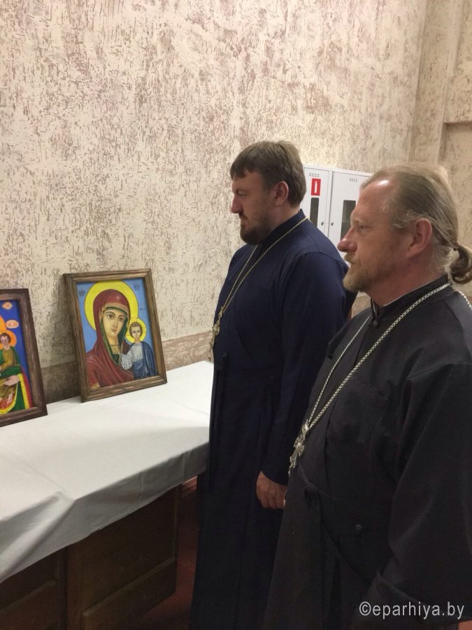 7 сентября 2017 г., в “Лечебно-трудовом профилактории №1” города Светлогорск прошел I этап конкурса авторского творчества “Вера в моем сердце – духовность без границ” среди осужденных, содержащихся в учреждениях уголовно-исправительной системы и граждан, находящихся в ЛТП Министерства внутренних дел Республики Беларусь. В конкурсную комиссию вошли благочинный Светлогорского округа, настоятель храма Преображения Господня города Светлогорск протоиерей Александр Кисель и настоятель храма святых апостолов Петра и Павла протоиерей Владимир Семенов, которые оценили работы и поздравили всех конкурсантов с этим событием. На конкурс было представлено десять икон, среди которых выбрали три лучшие. Победителям I этапа предстоит возможность поучаствовать во II областном этапе конкурса. Во время конкурса священники провели познавательную беседу по теме “Значение иконы в Ветхом и Новом Завете”. Протоиерей Владимир Семенов рассказал всем присутствующим о нерукотворном образе Господа и Спасителя нашего Иисуса Христа списке иконы “Спас Нерукотворный”. А протоиерей Александр Кисель в своем обращении пожелал всем, кто пишет иконы, писать их в своем сердце, а тем, кто смотрит на них, оплакивать свои грехи и приносить достойные плоды покаяния. |