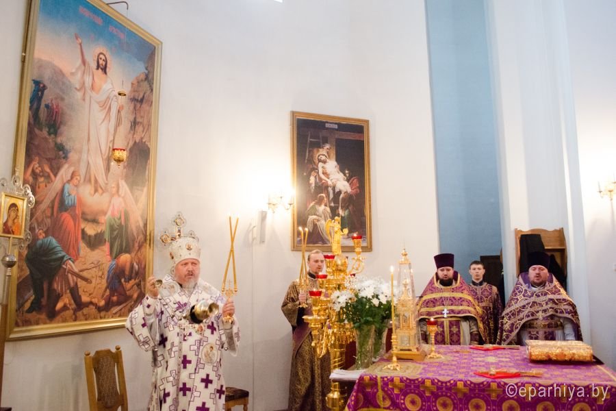 08 марта 2015г., в Неделю 2-ю Великого Поста, Преосвященнейший Стефан возглавил Божественную литургию Василия Великого в Спасо-Преображенском храме г.Светлогорска. Преосвященному сослужили: настоятель Спасо-Преображенского собора г.Светлогорска протоиерей Александр Кисель и духовенство собора. |