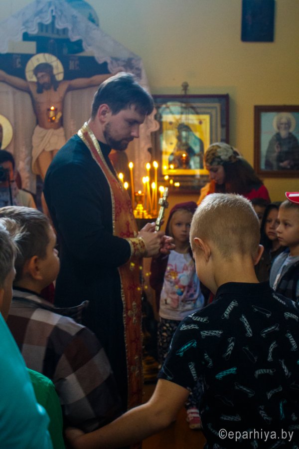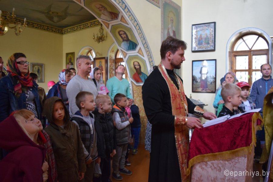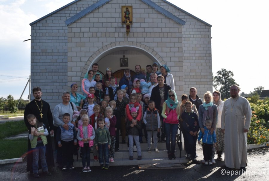 В день праздника святых благоверных князей Петра и Февронии Муромских, покровителей семьи, явивших своей жизнью ярчайший пример благодетели и преданности, 17 октября второклассники одного из классов ГУО «Средняя школа № 8 г.Гомеля», в котором проводиться факультатив по основам православной культуры, совершили небольшую паломническую поездку. В эти тёплые осенние дни вместе со своей учительницей Якубенко Анной Николаевной, родителями, братьями и сёстрами, клириком прихода храма святой Живоначальной Троицы г.Гомеля протоиереем Николаем Кадацким дети отправились к некоторым святым местам Гомельщины. Первым местом посещения стал храм святого великомученика Георгия Победоносца в деревне Белое болото, что находиться в пятидесяти километрах от Гомеля. После благодарственного молебна в храме, дальнейший путь юных паломников лежал в деревню Черное, где все желающие смогли окунуться в купели и набрать воды из святого источника, который бьёт из-под земли около разрушенного в 1936 году храма Покрова Пресвятой Богородицы. Затем все отправились на живописный берег Днепра на совместную трапезу, после которой ребята и родители приняли участие в эстафете, включающей в себя игры на скорость, меткость, игры с мячом, задание на внимательность и сообразительность, занимательные вопросы и шуточные задания. Набегавшись, наигравшись, отдохнув на природе совместно с родителями и сверстниками, ребята отправились в обратный путь, по дороге слушая рассказ об удивительной жизни двух святых - Петра и Февронии Муромских, покровителей семьи и брака. |