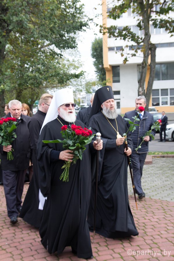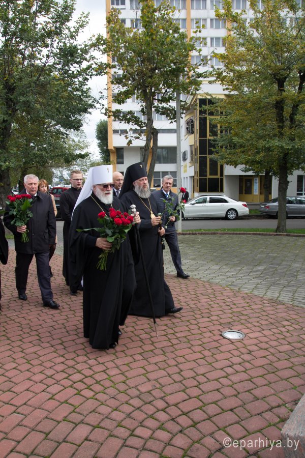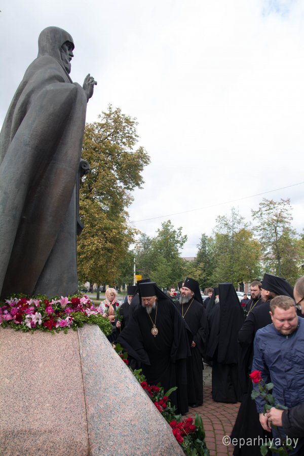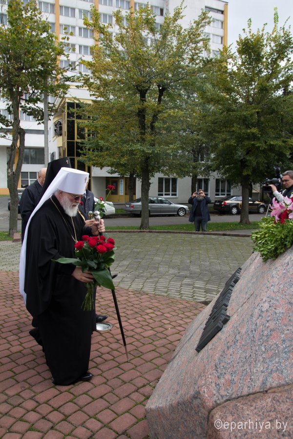 18 сентября 2017 г. в день памяти преподобномученика Афанасия Брестского Высокопреосвященный Павел, Митрополит Минский и Заслваский Павел, а также Преосвященный Стефан, епископ Гомельский и Жлобинский и прибывшие на торжества архиереи Русской, Украинской и Белорусской Православной Церкви возложили цветы к памятнику вышеупомянутому святому и совершили славление. |