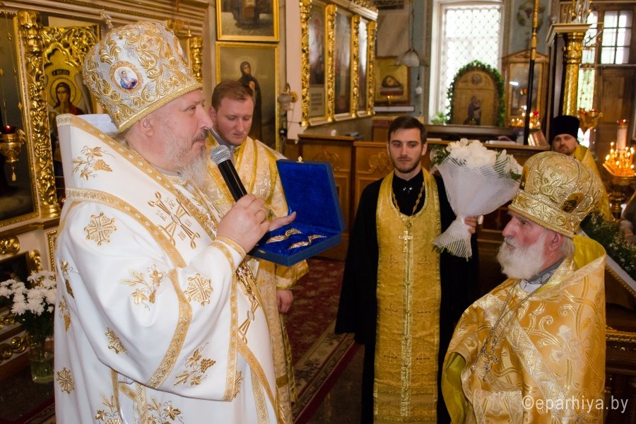 «Каждому из нас определена своя дорога, длина и извилистость которой известна лишь Господу. И велика радость, когда Бог не только позволяет долго идти по этому пути, но и сопровождает на всём его протяжении.» - сказал епископ Гомельский и Жлобинский Стефан. Сегодня, 20 сентября 2017 г., свой юбилей отмечает старейший клирик, духовник Гомельской епархии протоиерей Стефан Гладыщук. За свои 85 лет жизни и 65 лет служения в сане, он совершил много благих дел, был священнослужителем во многих храмах не только в Беларуси, но и за ее пределами, также награжден Орденом преподобного Сергия Родонежского. «Искренне поздравляем Вас с праздником и желаем преуспеяния в дальнейшем служении Святой Церкви, крепости сил, щедрой помощи Божьей и благополучия! Уже на протяжении многих лет Вы упорно несете свой крест канонического служения, вразумляете и обращаете на путь истины и спасения, призываете всех к миру и любви. Всю свою благоверную жизнь вы стоите на страже веры, укрепляете в ней людей и создаете в их душах иммунитет к злым умыслам. Благодарим Господа Бога за то, что он выбрал Вас и за то, что позволяет нам сейчас находиться вместе. Да хранит Вас Господь в добром здравии на многая лета!» - отметил в словах поздравления Преосвященный Стефан и преподнес в дар священнослужителю цветы и просвору, а от всего духовенства набор крестов. В этот день Божественную литургию в сослужении духовника Гомельской епархии протоиерея Стефана Гладыщука, благочинного монастырей Гомельской епархии архимандрита Амвросия (Шевцова), благочинных округов и председателей отделов Гомельской епархии в Свято-Петро-Павловском кафедральном соборе г. Гомеля совершил Преосвященный Стефан. По окончании литургии Владыка поздравил причастников с принятием Святых Христовых Таин и обратился к молящимся со словами Архипастырского назидания. На экраны белорусского телевидения в 2015 году вышел фильм "Пастырь", подготовленный "Телерадиокомпанией Гомель", при участии студии "Фавор" Информационного отдела Гомельской епархии. Премьера фильма состоялась 15 августа на канале Гомельского телевидения в программе "Постацi". |