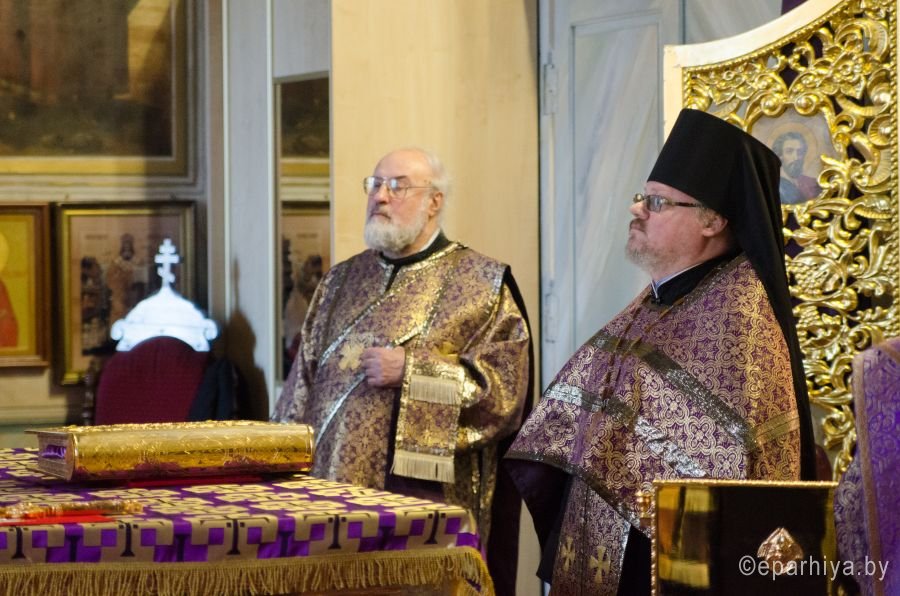 7 марта 2015г., в канун Недели 2-й Великого Поста, Преосвященнейший Стефан возглавил всенощное бдение в Свято-Петро-Павловском кафедральном соборе г.Гомеля. Преосвященному сослужили: секретарь Гомельской епархии протоиерей Георгий Алампиев и духовенство собора. |