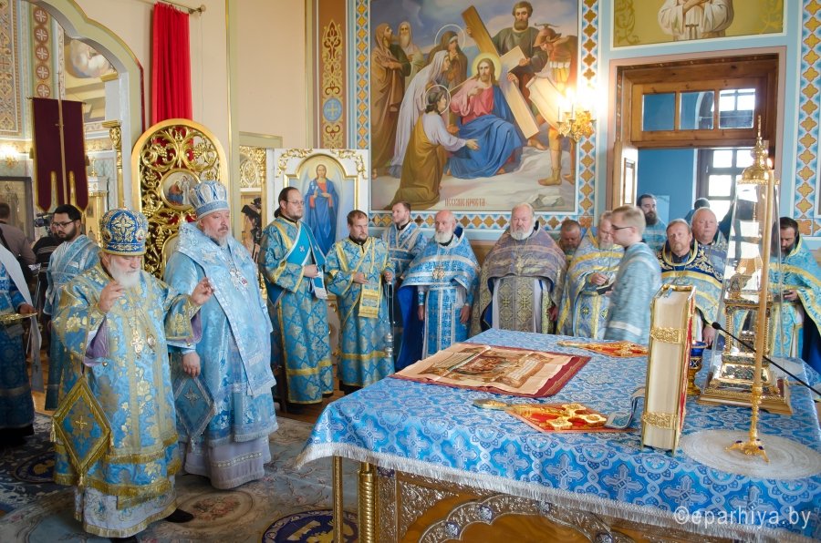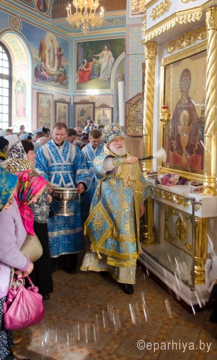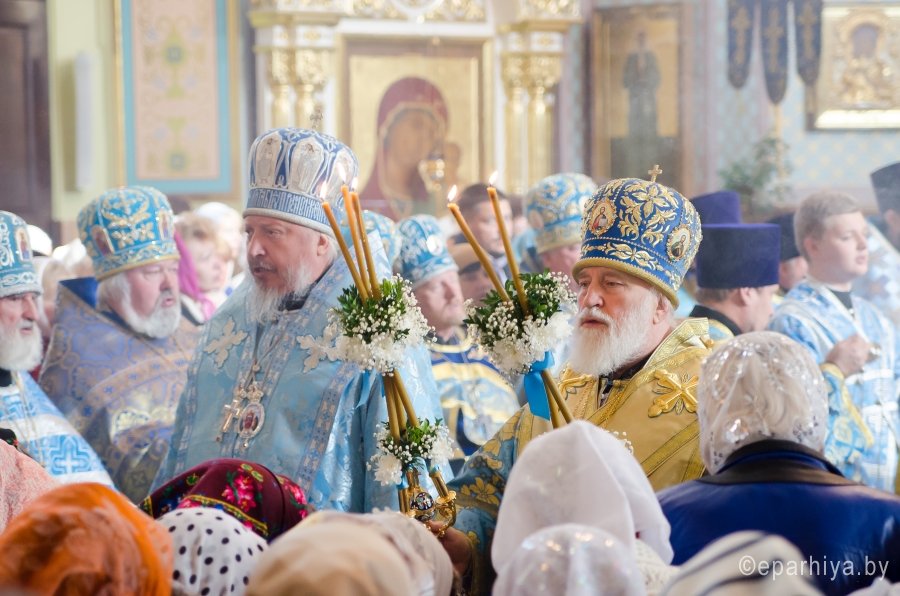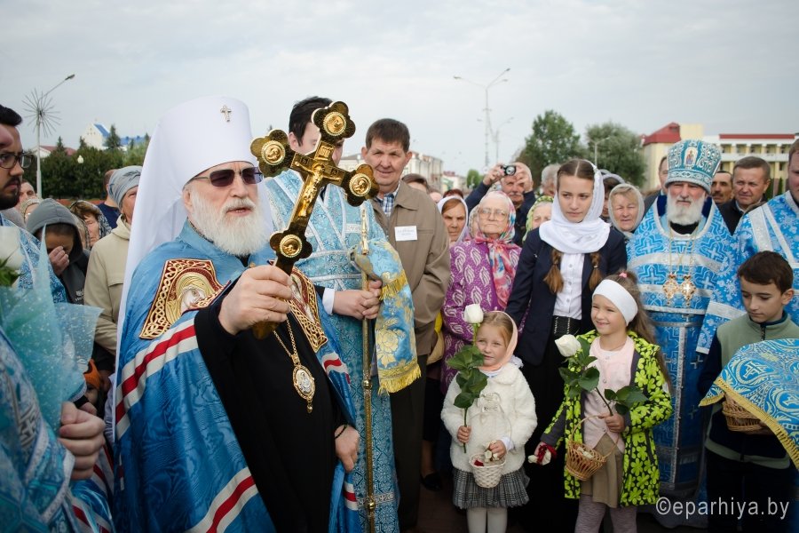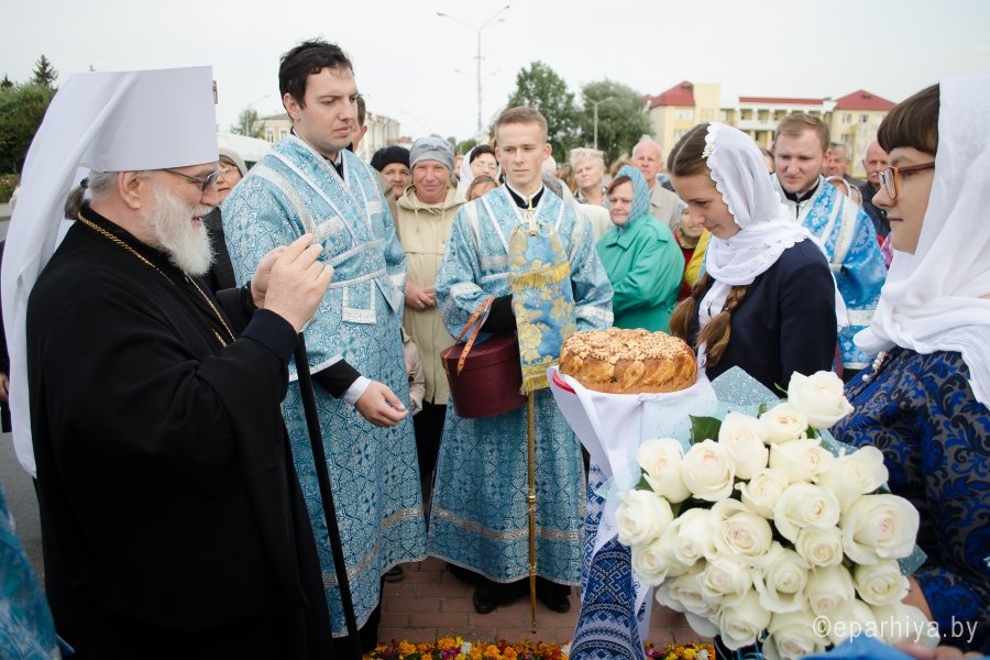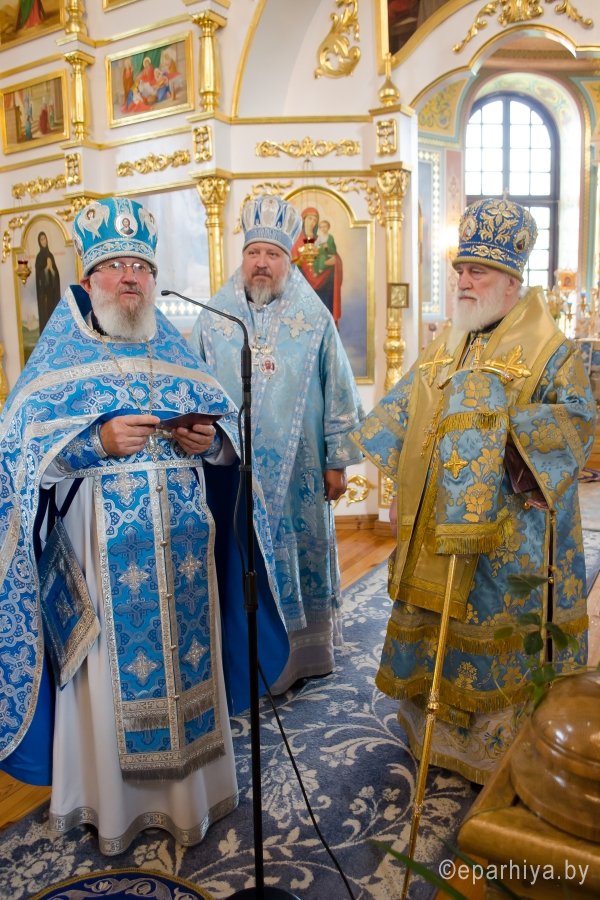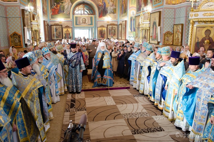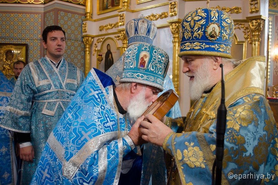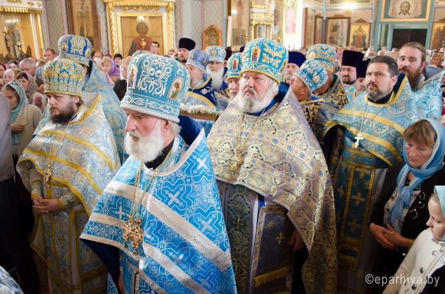 2017 год является знаменательным для Свято-Успенского собора г.Речицы, так как 145 лет назад, в 1872 году, храм был впервые освящен. Поэтому сегодня, 23 сентября, собор принимает под своими сводами высокое собрание из многих дорогих гостей, приглашенных на торжества по случаю юбилея. Свято-Успенский собор является одной из главных достопримечательностей города Речица. Его нередко посещают гости области и города, так как он известен своей историей и давно уже стал визитной карточкой Речицы. Собор является духовным средоточием православной веры, которая не раз подвергалась тяжелым испытаниям. Божественную литургию в этот праздничный день возглавил Высокопреосвященнейший Павел, митрополит Минский и Заславский, Патриарший Экзарх всея Беларуси в сослужении Преосвященнейшего Стефана епископа Гомельского и Жлобинского. При подъезде к г.Речица митрополита Павла встретили председатель речицкого райисполкома Панченко Виталий Семёнович, заместитель председателя Национального собрания Республики Беларусь Пирштук Болеслав Казимирович и Преосвященный Стефан, епископ Гомельский и Жлобинский. Перед началом Божественной литургии Высокопреосвященнейший Павел совершил освящение иконостаса и росписей собора, которые были завершены к юбилейным торжествам. Преосвященным сослужили: управляющий делами Минской Экзархии архимандрит Сергий (Брич), секретарь Минской епархии протоиерей Андрей Волков, духовник Гомельской епархии протоиерей Стефан Гладыщук, благочинный монастырей Гомельской епархии, председатель Синодальной комиссии по канонизации святых Белорусской Православной Церкви архимандрит Амвросий (Шевцов), настоятель Свято-Успенского собора г.Речица протоиерей Алексей Пешко, настоятель храма Преображения Господня в аг. Хотислав Малоритского района Брестской епархии протоиерей Петр Пешко, благочинные и председатели отделов, а так же духовенство Гомельской епархии. Во время богослужения Патриарший Экзарх вознёс молитвы о мире в Украине. Проповедь перед Причастием произнес клирик Свято-Петро-Павловского собора г.Гомеля протоиерей Александр Лопушанский. Богослужебные песнопения исполнил хор Свято-Успенского собора г.Речицы под управлением регента Сергея Лосева За богослужением присутствовал Николай Николаевич Зарезако, который будучи председателем Речицкого райисполкома в 1999г., способствовал передаче здания собора городскому православному приходу. Впоследствии, за оказанную помощь был награждён орденом Русской Православной Церкви святого равноапостольного князя Владимира. По заамвонной молитве архипастыри и сослужащие им священнослужители совершили славление празднику. По окончании богослужения с приветственным словом к Патриаршему Экзарху обратился епископ Гомельский и Жлобинский Стефан. Владыка сердечно поблагодарил митрополита Павла за посещение Гомельской епархии и богослужение в день 145-летия со дня первого освящения Свято-Успенского собора г. Речицы. Патриарший Экзарх поблагодарил епископа Стефана за слова приветствия, поздравил духовенство и благочестивых мирян с праздником и обратился ко всем со словом назидания. Высокопреосвященнейший Павел, митрополит Минский и Заславский, Патриарший Экзарх всея Беларуси поздравил с 85-летием духовника, старейшего клирика Гомельской епархии протоиерея Ст
