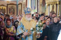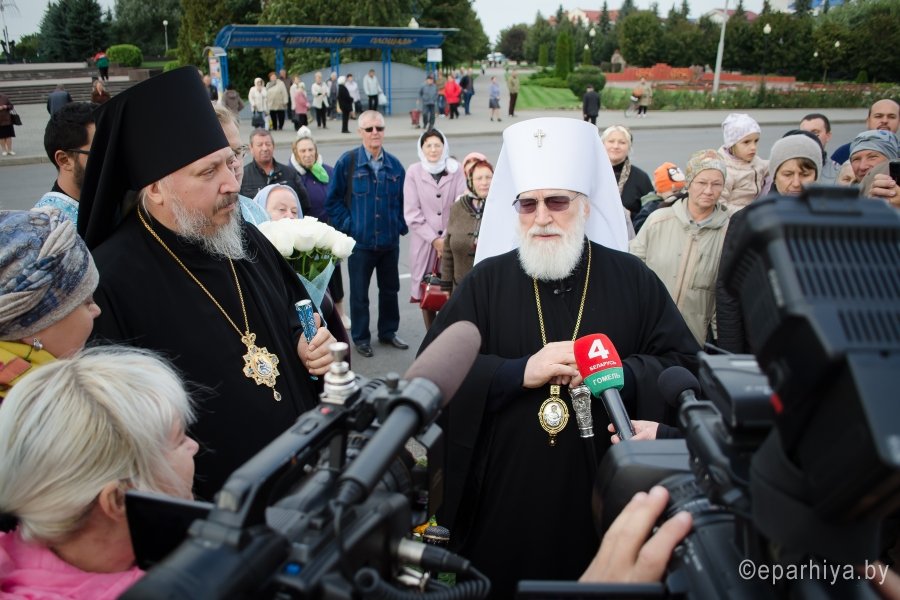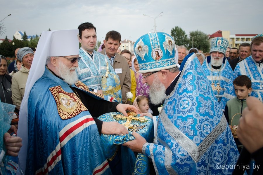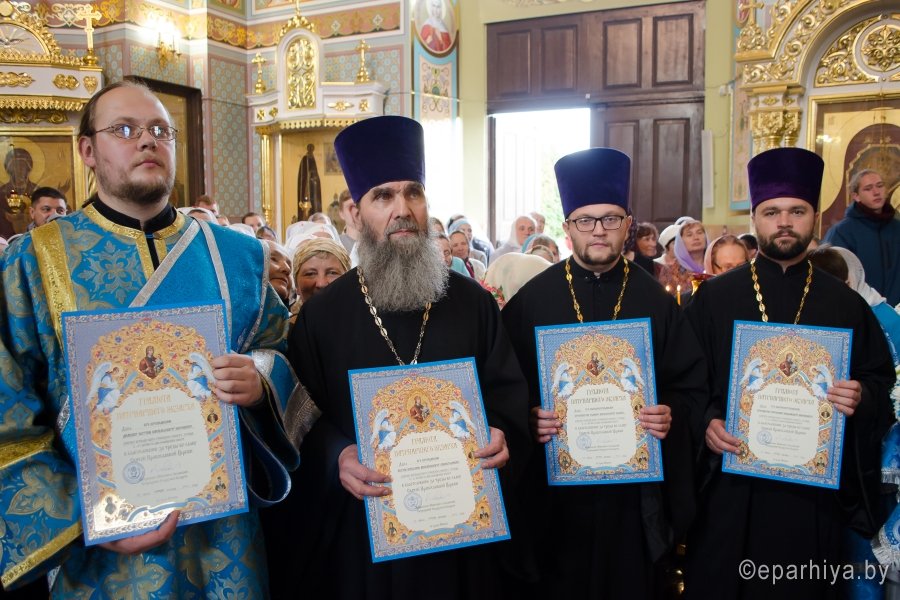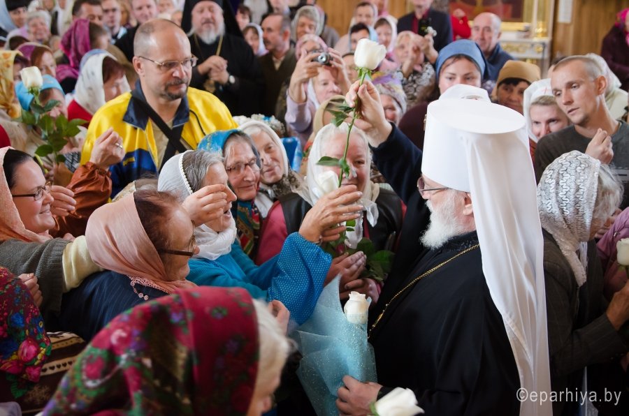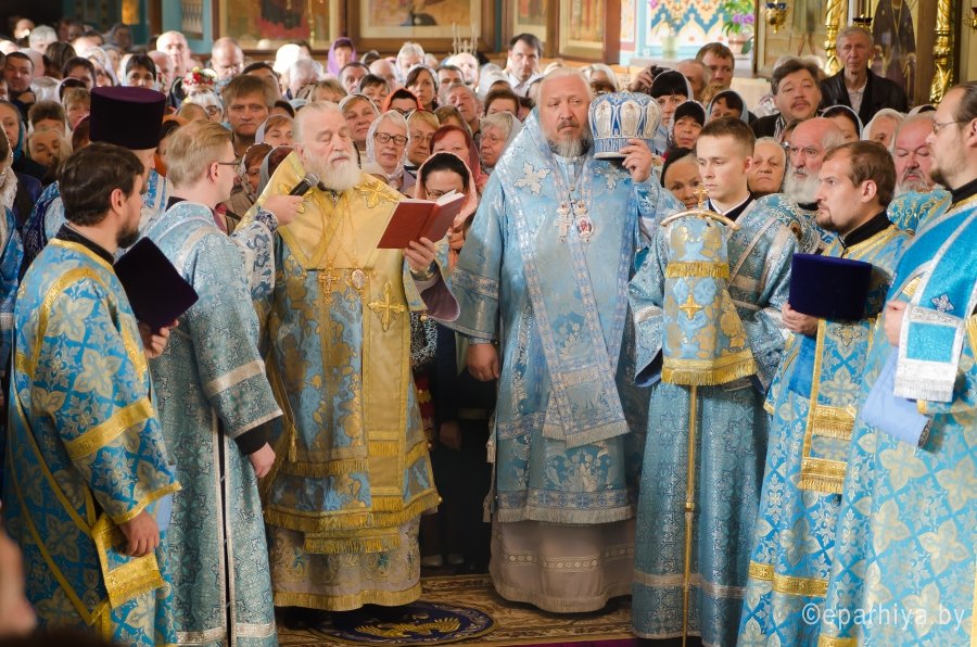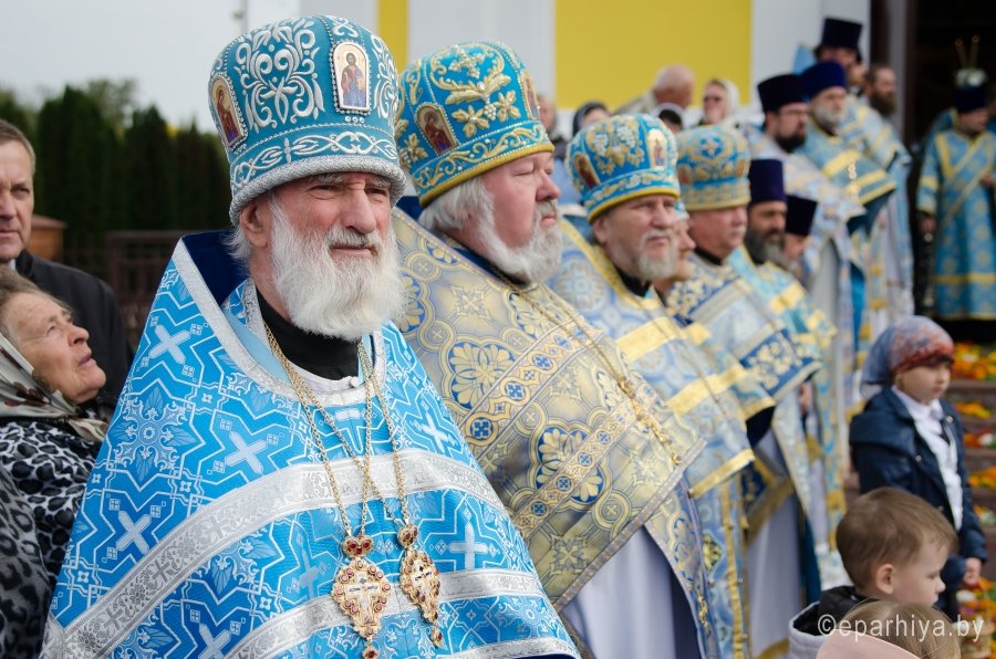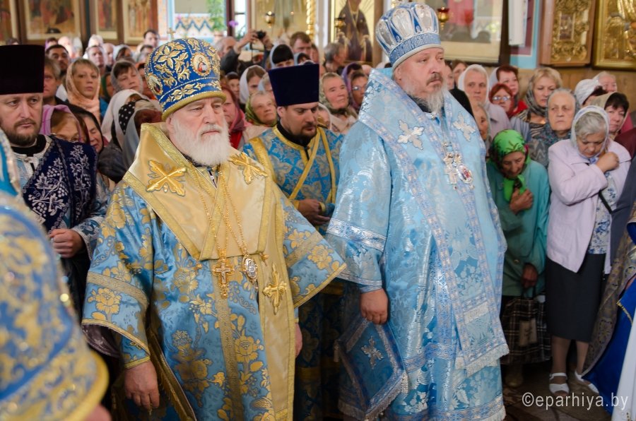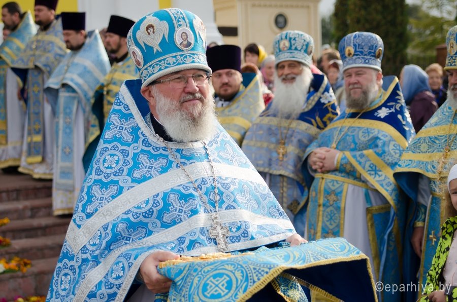 2017 год является знаменательным для Свято-Успенского собора г.Речицы, так как 145 лет назад, в 1872 году, храм был впервые освящен. Поэтому сегодня, 23 сентября, собор принимает под своими сводами высокое собрание из многих дорогих гостей, приглашенных на торжества по случаю юбилея. Свято-Успенский собор является одной из главных достопримечательностей города Речица. Его нередко посещают гости области и города, так как он известен своей историей и давно уже стал визитной карточкой Речицы. Собор является духовным средоточием православной веры, которая не раз подвергалась тяжелым испытаниям. Божественную литургию в этот праздничный день возглавил Высокопреосвященнейший Павел, митрополит Минский и Заславский, Патриарший Экзарх всея Беларуси в сослужении Преосвященнейшего Стефана епископа Гомельского и Жлобинского. При подъезде к г.Речица митрополита Павла встретили председатель речицкого райисполкома Панченко Виталий Семёнович, заместитель председателя Национального собрания Республики Беларусь Пирштук Болеслав Казимирович и Преосвященный Стефан, епископ Гомельский и Жлобинский. Перед началом Божественной литургии Высокопреосвященнейший Павел совершил освящение иконостаса и росписей собора, которые были завершены к юбилейным торжествам. Преосвященным сослужили: управляющий делами Минской Экзархии архимандрит Сергий (Брич), секретарь Минской епархии протоиерей Андрей Волков, духовник Гомельской епархии протоиерей Стефан Гладыщук, благочинный монастырей Гомельской епархии, председатель Синодальной комиссии по канонизации святых Белорусской Православной Церкви архимандрит Амвросий (Шевцов), настоятель Свято-Успенского собора г.Речица протоиерей Алексей Пешко, настоятель храма Преображения Господня в аг. Хотислав Малоритского района Брестской епархии протоиерей Петр Пешко, благочинные и председатели отделов, а так же духовенство Гомельской епархии. Во время богослужения Патриарший Экзарх вознёс молитвы о мире в Украине. Проповедь перед Причастием произнес клирик Свято-Петро-Павловского собора г.Гомеля протоиерей Александр Лопушанский. Богослужебные песнопения исполнил хор Свято-Успенского собора г.Речицы под управлением регента Сергея Лосева За богослужением присутствовал Николай Николаевич Зарезако, который будучи председателем Речицкого райисполкома в 1999г., способствовал передаче здания собора городскому православному приходу. Впоследствии, за оказанную помощь был награждён орденом Русской Православной Церкви святого равноапостольного князя Владимира. По заамвонной молитве архипастыри и сослужащие им священнослужители совершили славление празднику. По окончании богослужения с приветственным словом к Патриаршему Экзарху обратился епископ Гомельский и Жлобинский Стефан. Владыка сердечно поблагодарил митрополита Павла за посещение Гомельской епархии и богослужение в день 145-летия со дня первого освящения Свято-Успенского собора г. Речицы. Патриарший Экзарх поблагодарил епископа Стефана за слова приветствия, поздравил духовенство и благочестивых мирян с праздником и обратился ко всем со словом назидания. Высокопреосвященнейший Павел, митрополит Минский и Заславский, Патриарший Экзарх всея Беларуси поздравил с 85-летием духовника, старейшего клирика Гомельской епархии протоиерея Ст