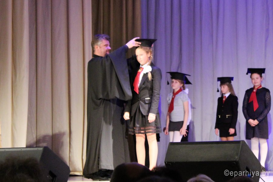 23 сентября протоиерей Георгий Мартышевский, клирик храма святого благоверного князя Александра Невского, принял участие в торжествах, посвящённых 135-летию Гимназии г. Рогачёва. В Городском доме культуры собрались гимназисты и выпускники, родители и педагоги, чтобы выразить благодарность своему учебному заведению и с гордостью вместе сказать: «Виват, гимназия!» С особым волнением поднимались на сцену пятиклассники, которым летом пришлось выдержать непростые вступительные экзамены. Поэтому торжественная церемония посвящения в гимназисты - важное событие для них. Священник обратился ко всем со словами поздравления и пожелал здоровья, успехов и радости в открытии новых знаний. |