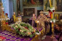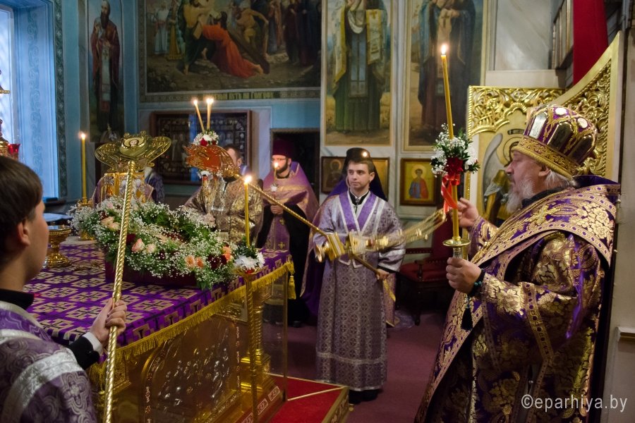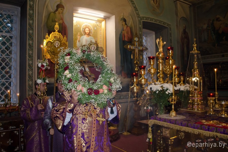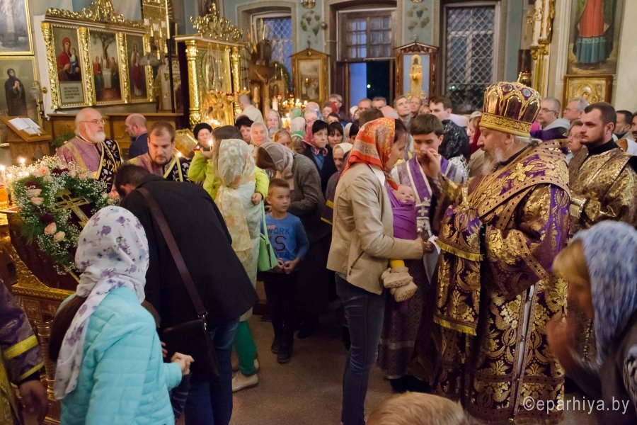 26 сентября 2017г., в канун праздника Воздвижения Честного и Животворящего Креста Господня, Преосвященный Стефан в сослужении духовенства собора совершил всенощное бдение в Свято-Петро-Павловском кафедральном соборе г.Гомеля. После великого славословия Владыка совершил чин воздвижения Креста Господня. |