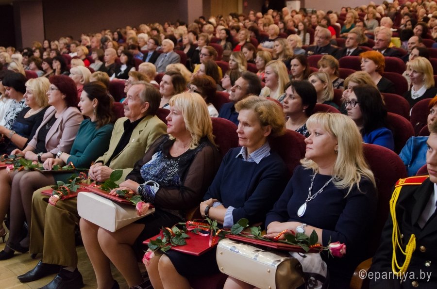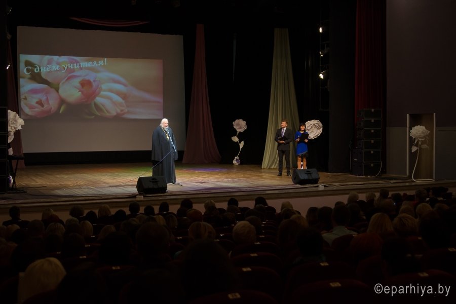 В первое воскресенье октября в Беларуси по традиции, заведенной более 50 лет назад празднуется День учителя. 26 сентября 2017г., Преосвященный Стефан принял участие в мероприятии, посвященном этому дню. В ходе мероприятия за многолетний плодотворный труд, высокое профессиональное мастерство по духовно-нравственному воспитанию и значительный вклад на благо духовного просвещения детей и молодёжи Владыка наградил Архиерейской грамотой учителя начальных классов ГУО «Гимназия № 58 г.Гомеля имени Ф.П.Гааза», преподавателя факультатива «Основы православной культуры» Жихареву Элину Ивановну; учителя белорусского языка и литературы, преподавателя факультатива «Основы православной культуры» ГУО «Средняя школа № 39 г.Гомеля» Тимошенко Ольгу Анатольевну и воспитателя группы продлённого дня, преподавателя факультатива «Основы православной культуры» ГУО «Средняя школа № 55 г.Гомеля» Ребенок Валентину Петровну. В мероприятии также приняли участие начальник Управления образования Гомельского областного исполнительного комитета Порошин Сергей Иванович, заместитель председателя Гомельского горисполкома по социальным вопросам Атаманчук Виталий Геннадьевич, представители Администраций города Гомеля. |