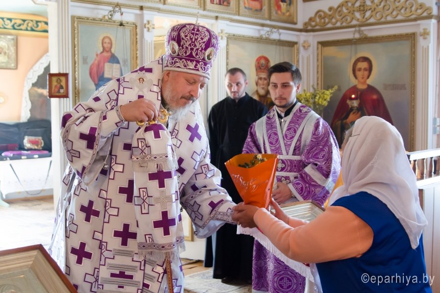27 сентября 2017г., в праздник Воздвижения Честного и Животворящего Креста Господня, Преосвященный Стефан совершил Божественную литургию в храме свт. Николая Чудотворца аг. Поповка. Преосвященному сослужили: благочинный монастырей Гомельской епархии архимандрит Амвросий (Шевцов) и духовенство епархии. По окончании богослужения Владыка совершил славление Кресту, поздравил причастников с принятием Святых Христовых Таин и обратился к молящимся со словами Архипастырского назидания. |