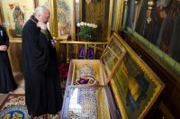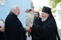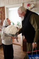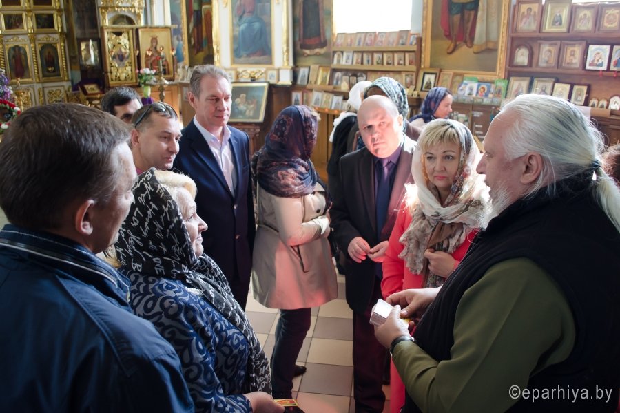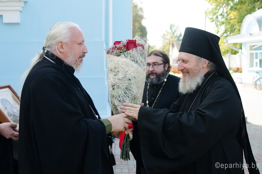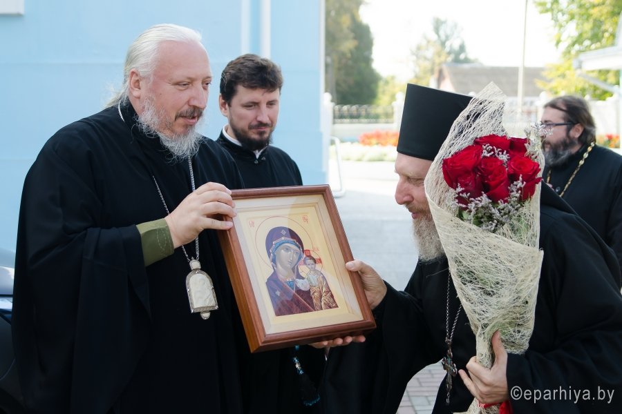 27 сентября 2017г. Преосвященный Стефан совершил рабочую поездку в Свято-Иоанно-Кормянский женский монастырь аг. Корма. В ходе визита Владыка посетил место бывшего храма свт. Николая Чудотворца в д. Огородня, сожженного в 1956 г., в котором служил св. прав. Иоанн Кормянский, и где спустя много лет были обретены Его нетленные мощи. В рамках своей рабочей поездки Преосвященный Стефан поздравил с Днем рождения архимандрита Варсонофия (Степанцова) и преподнес в дар букет цветов и Святой Образ. В этот же день Владыка посетил старейшую прихожанку Свято-Покровского храма Свято-Иоанно-Кормянского монастыря Бычкову Анну Федоровну и поздравил с Днем рождения. Преосвященный Стефан пожелал Анне Федоровне крепкого здравия, Божией помощи и благополучия на многая лета. |