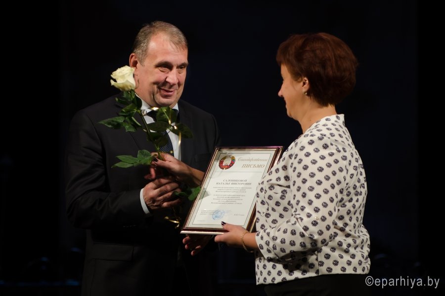 28 сентября 2017г. Преосвященный Стефан принял участие в мероприятии, посвященном Дню учителя. В этот день в торжественной обстановке чествовали педагогов, ветеранов педагогического труда и молодых специалистов Железнодорожного района г. Гомеля. В мероприятии также приняли участие: начальник отдела образования, спорта и туризма Гомельского горисполкома Крилистенко Людмила Владимировна, глава администрации Железнорожного района г. Гомеля Уткин Виталий Юрьевич, председатель Гомельской областной организации Белорусского профсоюза образования и науки Филипцов Николай Акимович, заместитель генерального директора ОАО "Гомсельмаш" Ковалевич Николай Николаевич. |