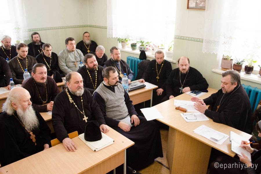 9 марта 2015г., Преосвященнейший Стефан возглавил собрание духовенства Гомельского районного благочинного округа. На собрании обсуждались текущие вопросы приходской жизни, а также документы, утвержденные на прошедшем в этом году Архиерейском Совещании Русской Православной Церкви. В частности документ «Об участии верных в Евхаристии» и «Временное положение о распределении выпускников духовных учебных заведений Русской Православной Церкви». |