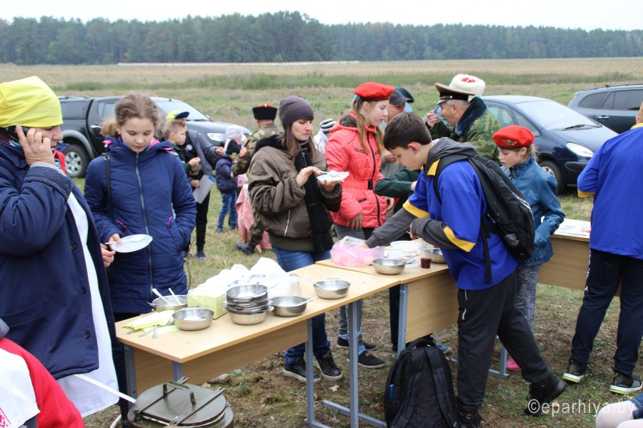 30 сентября 2017г., в рамках проведения республиканской информационно-пропагандистской компании МЧС «Гордимся, что научили», направленной на обучение детей правилам безопасности, на базе средней школы аг.Печищи Светлогорского района по инициативе Светлогорского РОЧС и Светлогорского отделения казачества была проведена спортивная военно-патриотическая игра «Спасатель, вперед!». Участие в соревнованиях приняли 3 команды: учащиеся кадетского класса МЧС средней школы №6 г.Светлогорска, ребята из Печищанской средней школы и команда Воскресной школы прихода храма святой великомученицы Варвары аг.Боровики. Соревнуясь в ловкости, силе и выносливости, юным спасателям предстояло пройти множество этапов: полосу препятствий, оказание первой медицинской помощи, перетягивание каната, одевание на время и правильность экипировки пожарного, стрельбу из винтовки и др. В ходе состязаний ребята показали не только хорошую физическую подготовку, но и теоретические знания по основам безопасности и истории Беларуси. По итогам соревнований победителем игры «Спасатель, вперед!» стала команда Воскресной школы прихода храма святой великомученицы Варвары аг.Боровики. Настоятель храма архимандрит Алексий (Желенок) поздравил всех участников и организаторов мероприятия, отметил , что в проведении таких конкурсов у ребят воспитываются и закаливаются важные качества: смелость, решительность, дисциплинированность, настойчивость, готовность прийти на помощь своим друзьям, а затем подарил школьникам иконки и православные календари. В завершение мероприятия ребят угостили вкусной солдатской кашей из настоящей военной полевой кухни, вручили сладкие призы. |